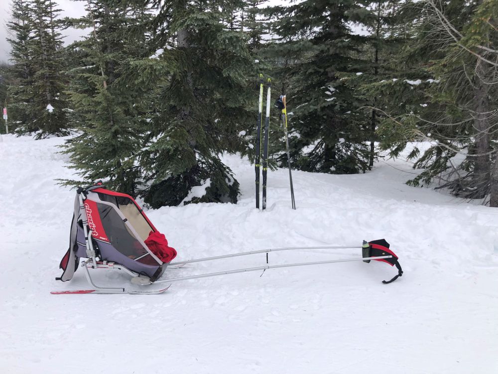This guy came zooming past us, towing his toddler in a ski buggy. What the what?!