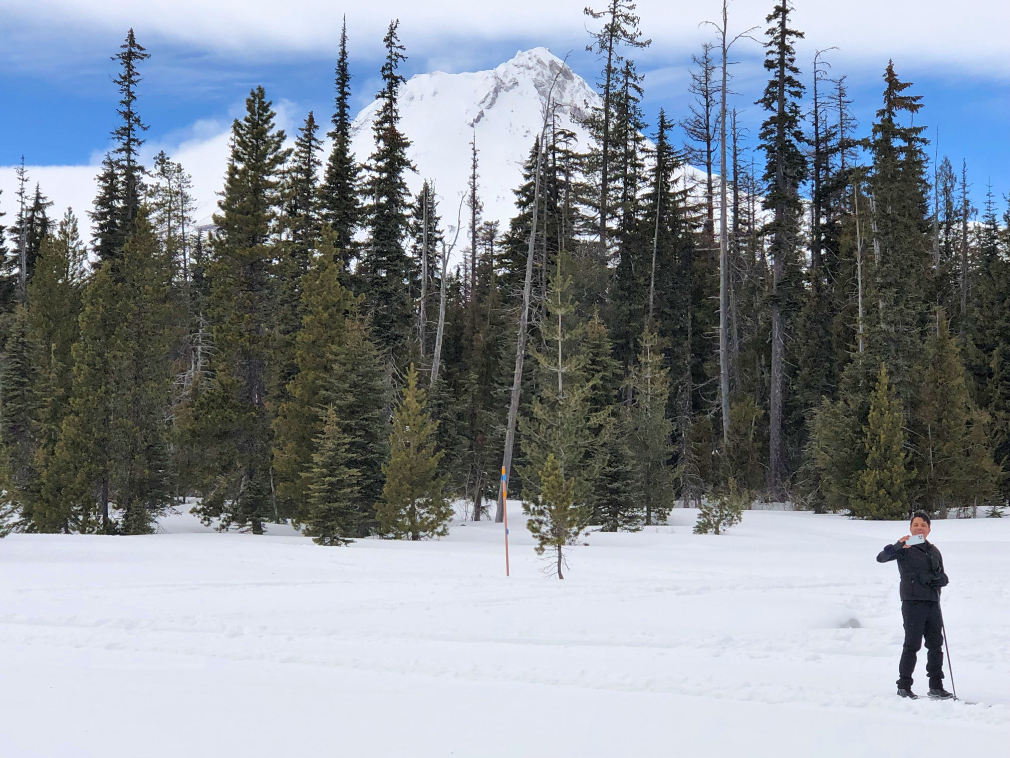Pedro is an experienced cross-country skier and really loves the sport. I have only tried cross-country skiing when I was a teenager at my mom’s property in North Idaho, many years ago. I only recalled that it was very hard to do. But it was his birthday and as long as I’ve known him he has not gone cross-country skiing. I was determined to make it happen. He has enough gear that I am able to borrow what he is not using. The closest groomed trails are at Mt. Hood outside of Portland. It’s about an hour and a half from Pedro’s house, which is not terribly far away, but inconvenient. So I rented us an Airbnb room close to the mountain.