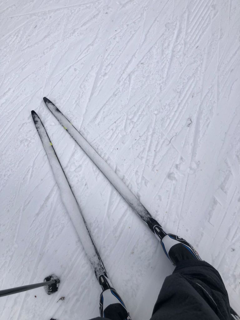 We left the parking lot and walked a short distance to the trail, through heaps of snow. There had been no need for concern, as snow was several feet deep in every direction. I nervously put on Pedro’s extra skis and boots. He has some super fancy elite skis that are apparently highly calibrated to size and weight. He told me that he weighs too much to use the skis right now, so I could use them. Luckily, I fit well into his old boots too. It’s fun dating a guy who likes to have the best quality gear, and then I get to benefit.