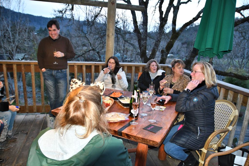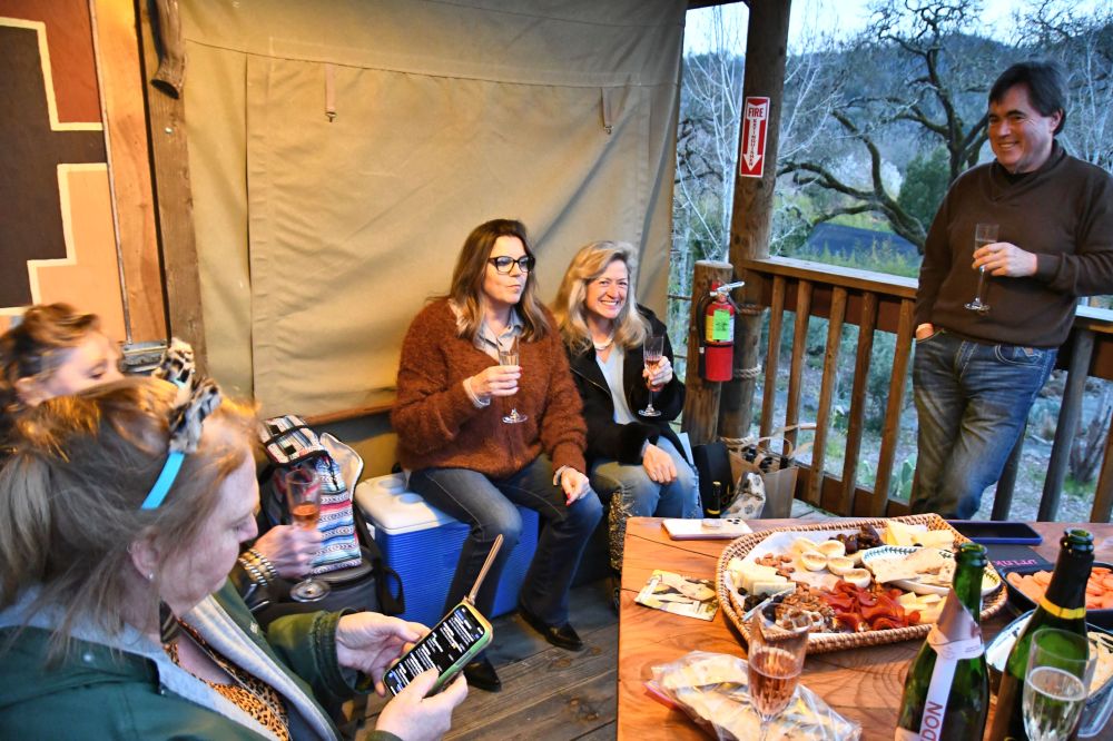Everyone arrived on time and we met in the parking lot. We were divided into two tents and two company Jeeps met us to help us drive us and our luggage up the hill to our lodging. Then we settled in and unpacked all the champagne. There was a lot of champagne. That was our price of admission. Margaret and her beau Allen covered all the rest. ❤