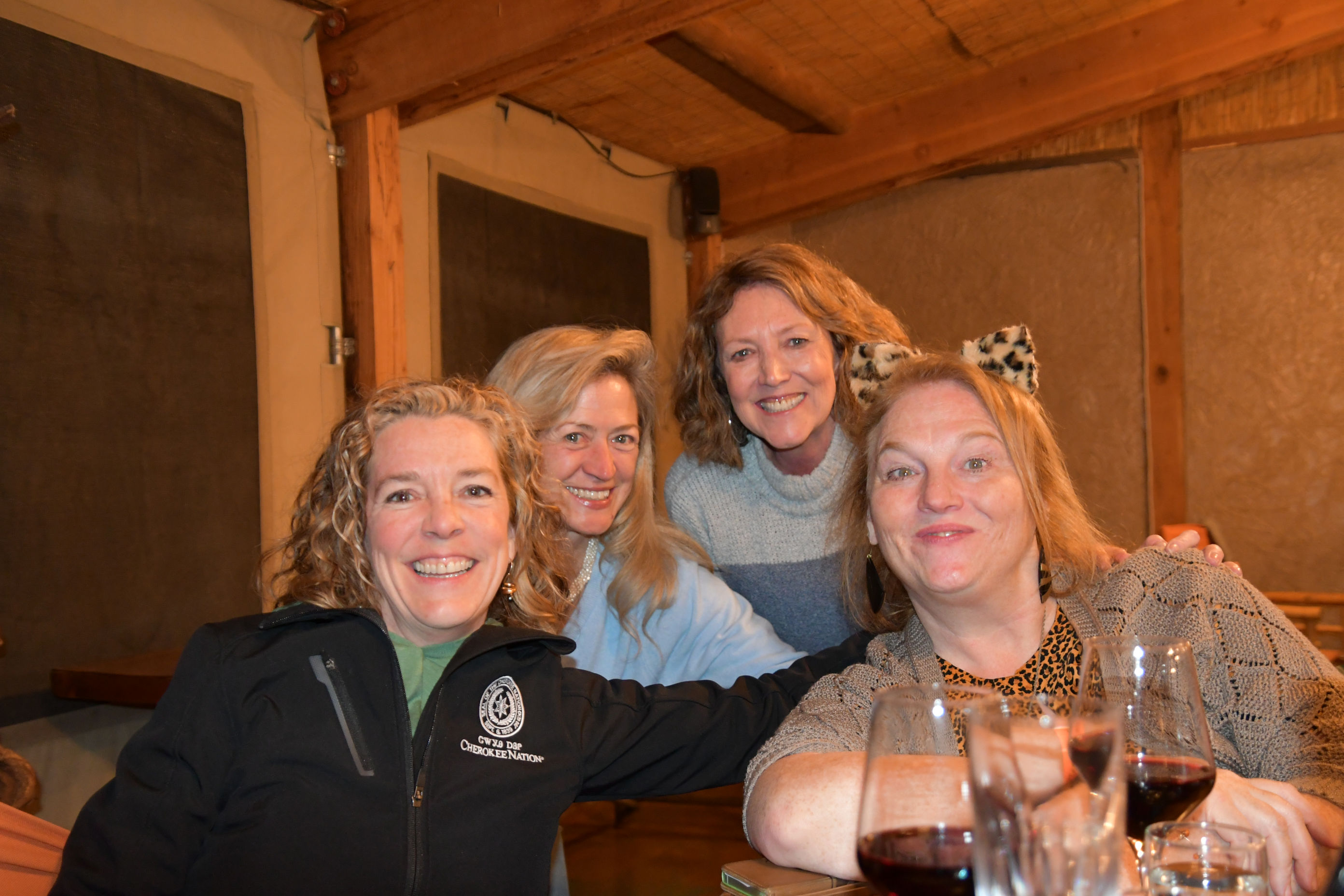 Everyone arrived on time and we met in the parking lot. We were divided into two tents and two company Jeeps met us to help us drive us and our luggage up the hill to our lodging. Then we settled in and unpacked all the champagne. There was a lot of champagne. That was our price of admission. Margaret and her beau Allen covered all the rest. ❤