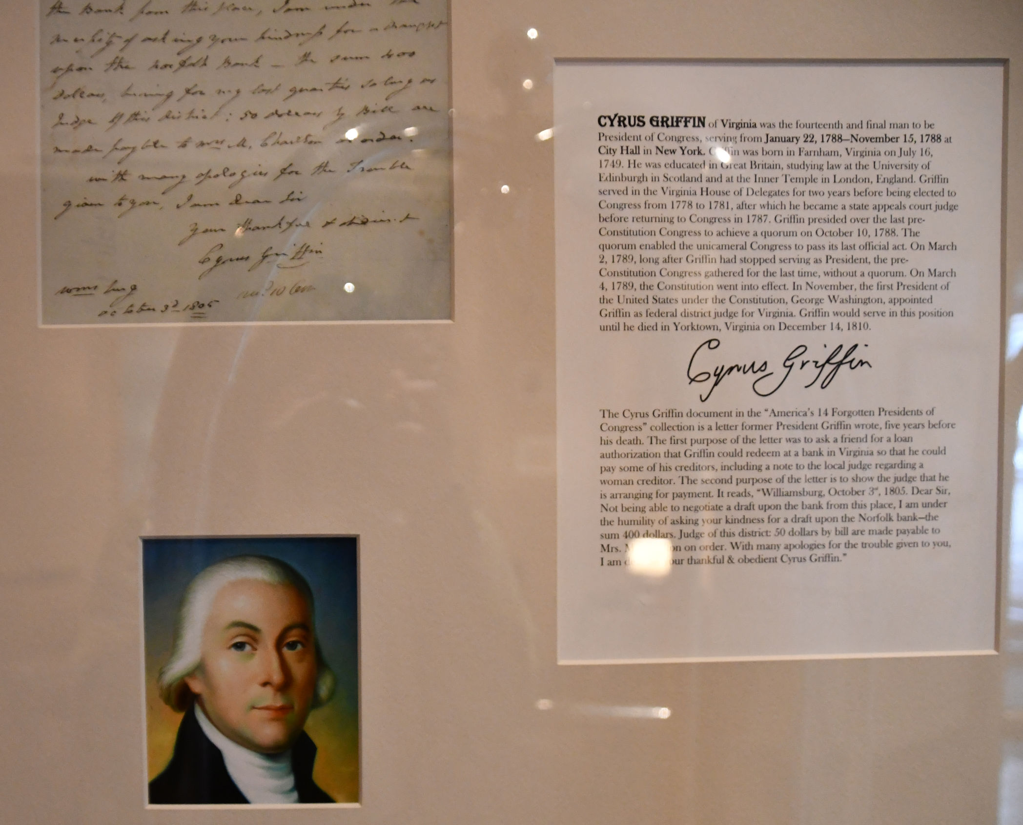 After St. Clair, we had President Cyrus Griffin, the final President of Congress, serving until November 1788. His framed plaque is at the top of the post. In March 1789 the Constitution was ratified, and in April 1789, George Washington took office as the first President of the United States.