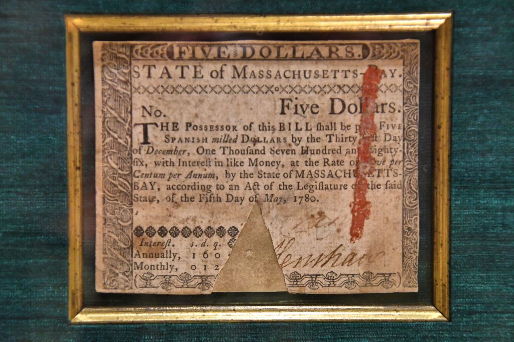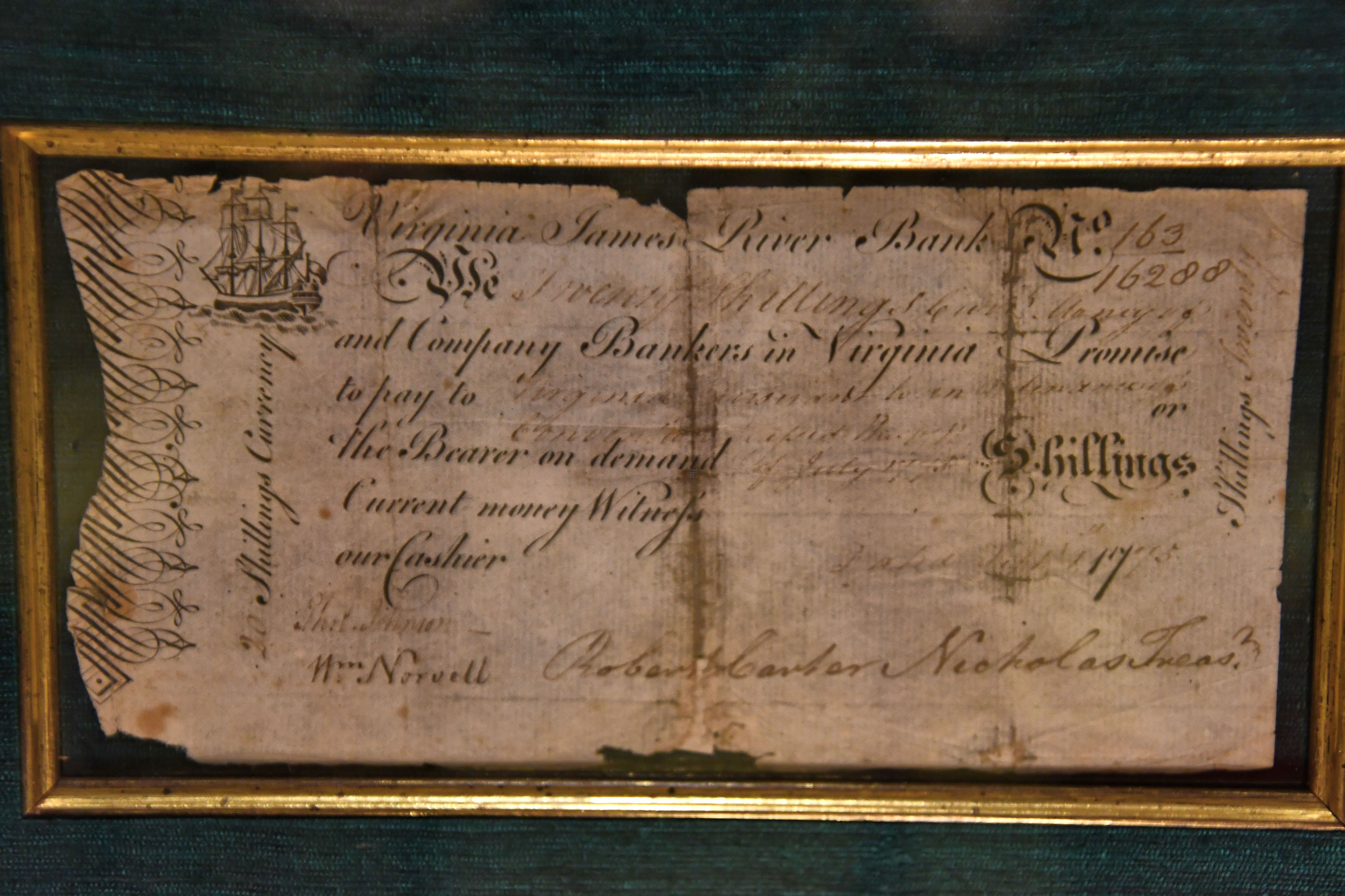 I enjoyed looking at the examples of very old paper money. The plaque states that “Colonial American Notes were the first ever officially authorized paper money by a Western world government.” Originally, they were printed in 1690 to help fund King William’s War. Later the paper notes were used for other nation-building expenses, which also led to the first banks created.