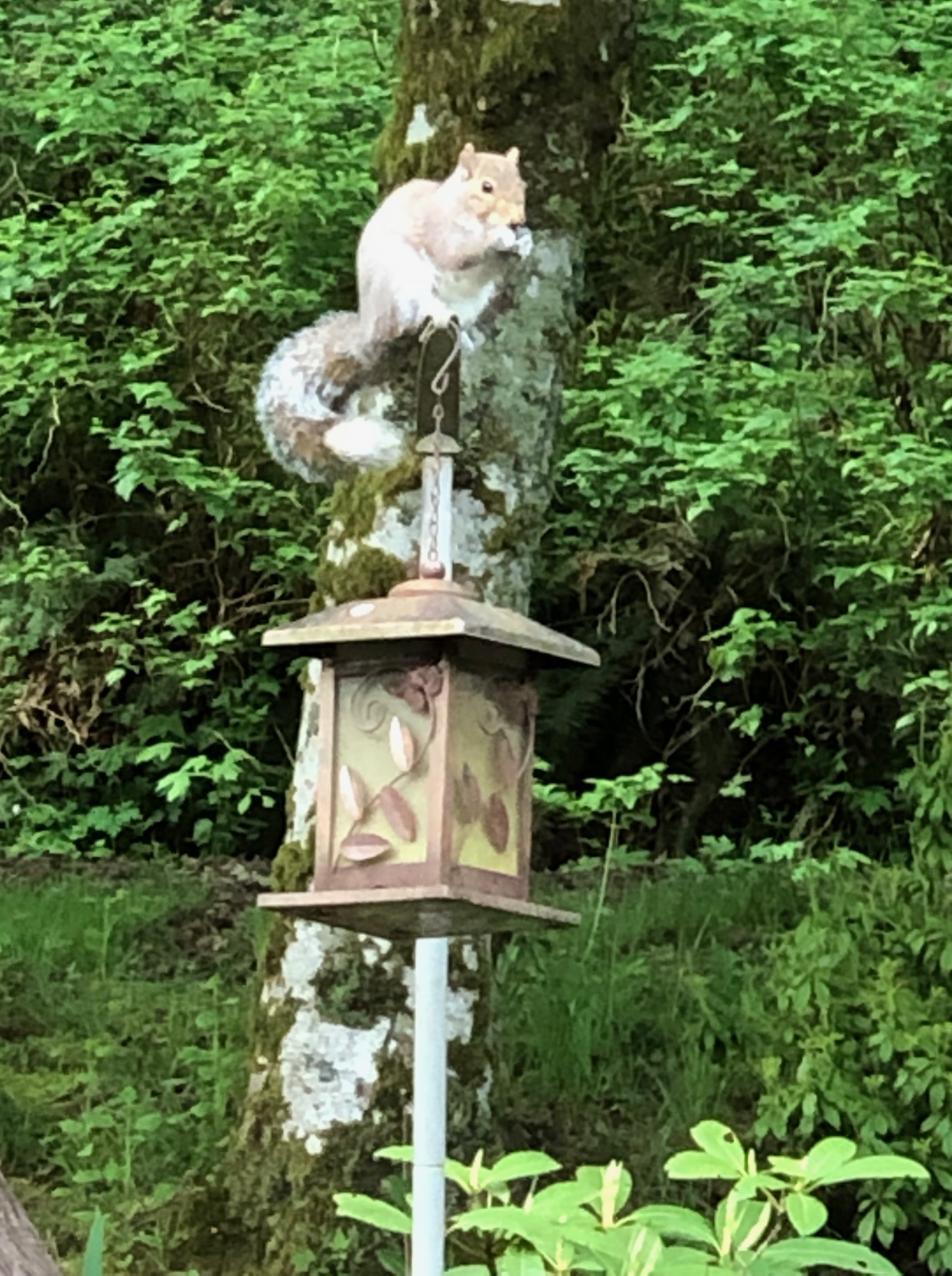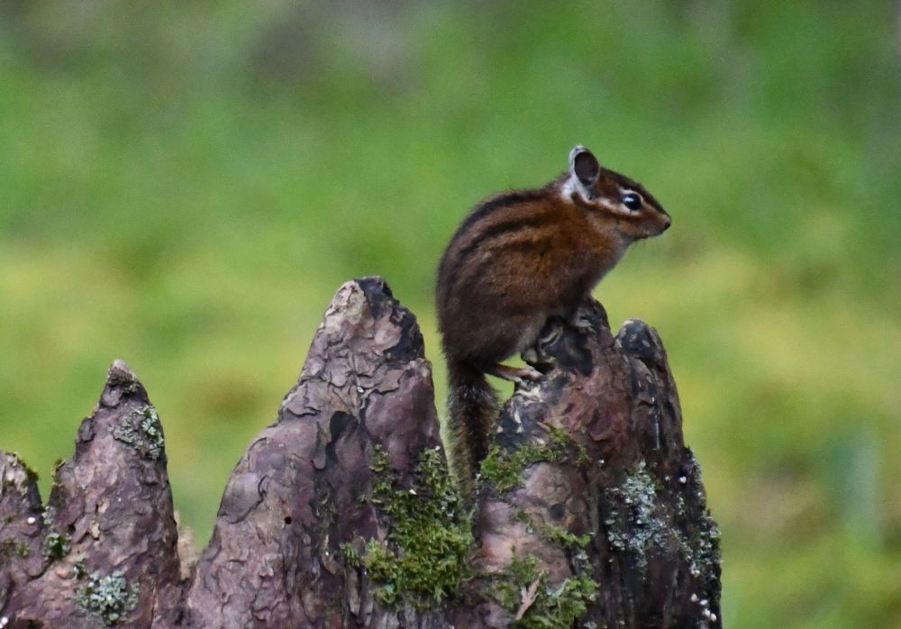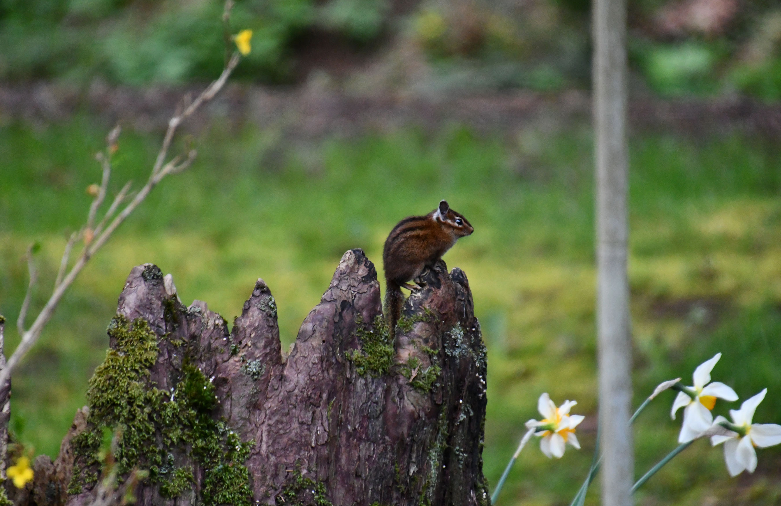 I watched a funny scene the other morning. This tiny chipmunk came from a distant tree, ran along my driveway, jumped up the retaining wall to get to the bird feeder and rapidly filled its tiny cheeks alongside the morning bird crew. Then it climbed down the wall, and raced away out of sight. A few minutes later, it was back, doing the same thing.