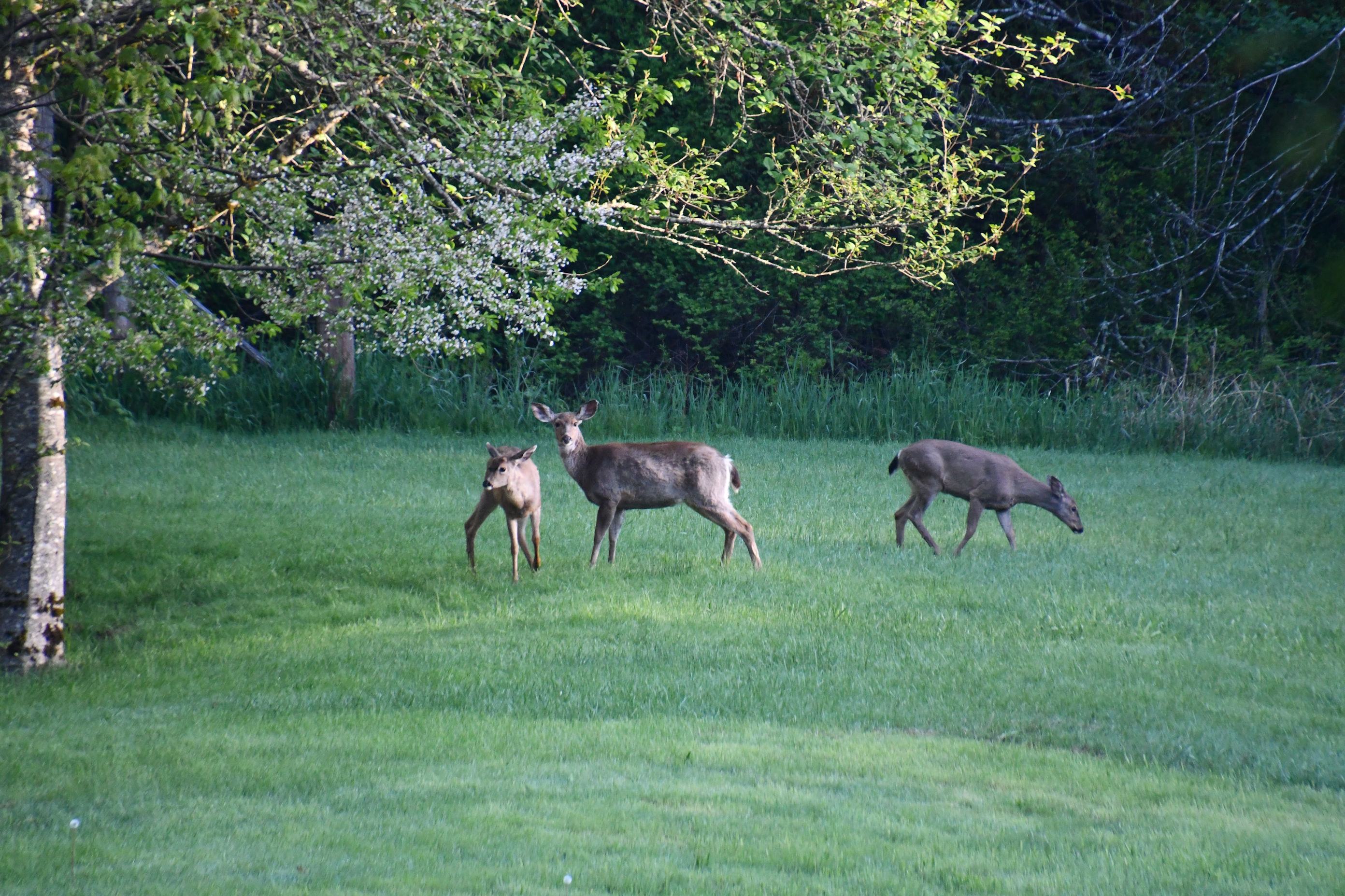 I’ve had fewer deer around the last two years. They come in smaller groups, less frequently, and they move on quickly. I just realized the likely reason why: my neighbors (there are three houses in a row right here, and then no one else I can see in any direction). Anyway, the older couple that lived farthest away used to feed the deer consistently. They bought bushels of apples and grains for them and fed them all year long. They discovered that, while deer don’t like bread in general, they do like the gross cheap Wonder bread, and so they fed them Wonder bread too. The deer got fat and numerous with their help I’m sure. That couple moved to Montana two summers ago.