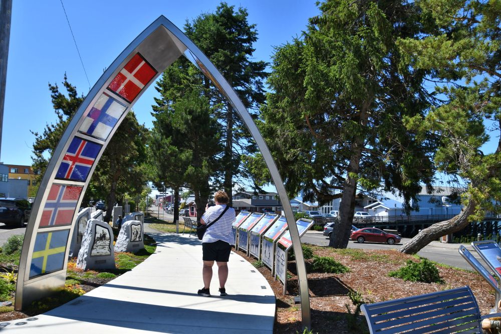 On my visits to the city in the past, I had noticed Swedish bakeries and Finnish tourist shops, and had not thought much about it. The website for the park explains that Scandinavian immigrants have been a significant part of Astoria’s history, and the earliest of them were loggers, fishermen, farmers, and small business people. By the 1910 census, Scandinavians made up 35% of the Astoria population. Their descendants put up this monument. It is packed with imagery and education for its small size. Scroll through the images below to see all the interesting parts of this park.