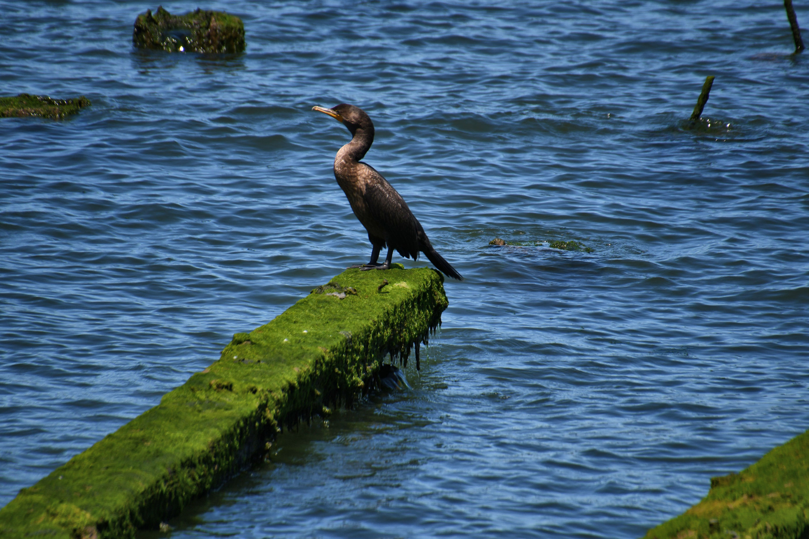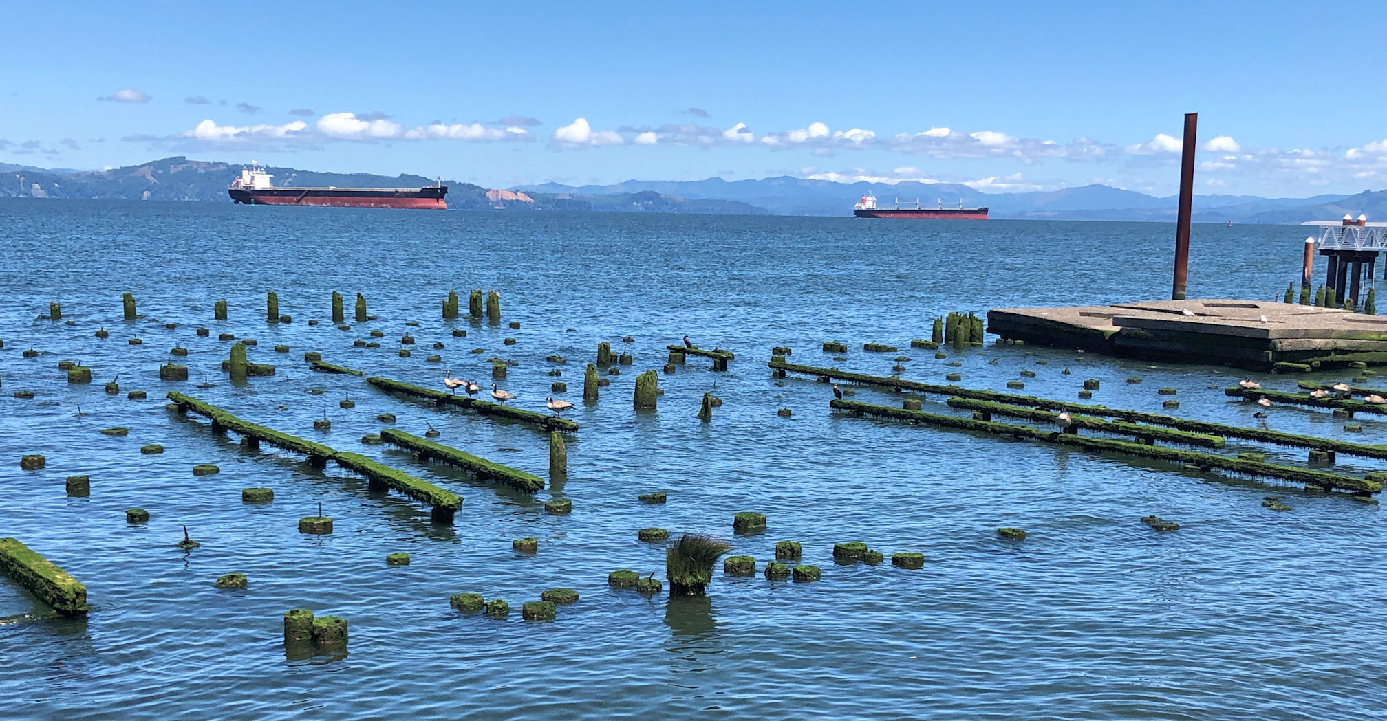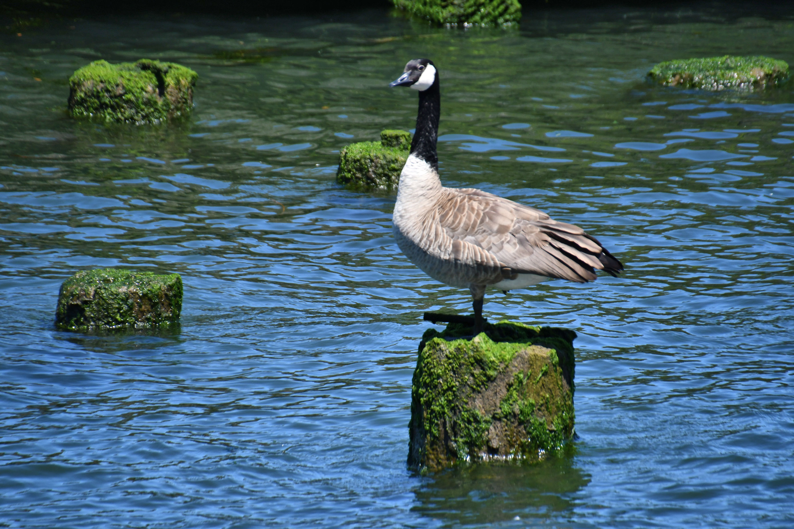 Remains of an old dock in the foreground make desirable perching spots for the Canada geese.
