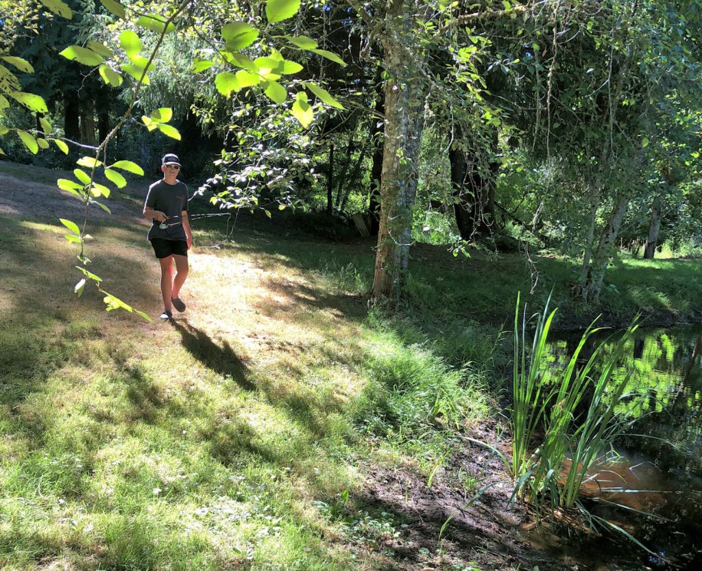 In the past few years, a Great Blue Heron has made my pond its regular hunting ground. I was worried that it had decimated the fish population. They barely jump anymore, and I’m never sure if it’s actually fish jumping, or bullfrogs. But Brandon answered my question. He fished for hours, caught about 14 perch he said, and threw them all back.