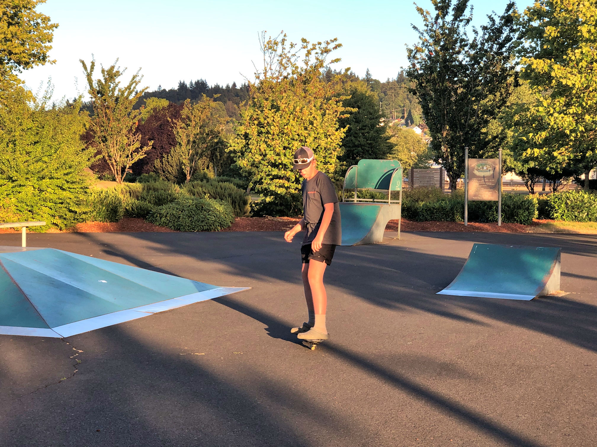 Brandon also brought a new toy. It’s called a Razor RipStik and it’s a lot like a skateboard. You move it by swaying/twisting your hips. You can get it going from a complete stop, just by wiggling. It’s pretty cool. Rainier has a tiny skate park that is mostly empty, which is what a skater beginner likes best.