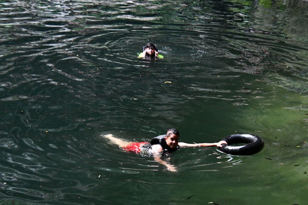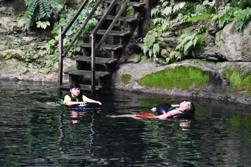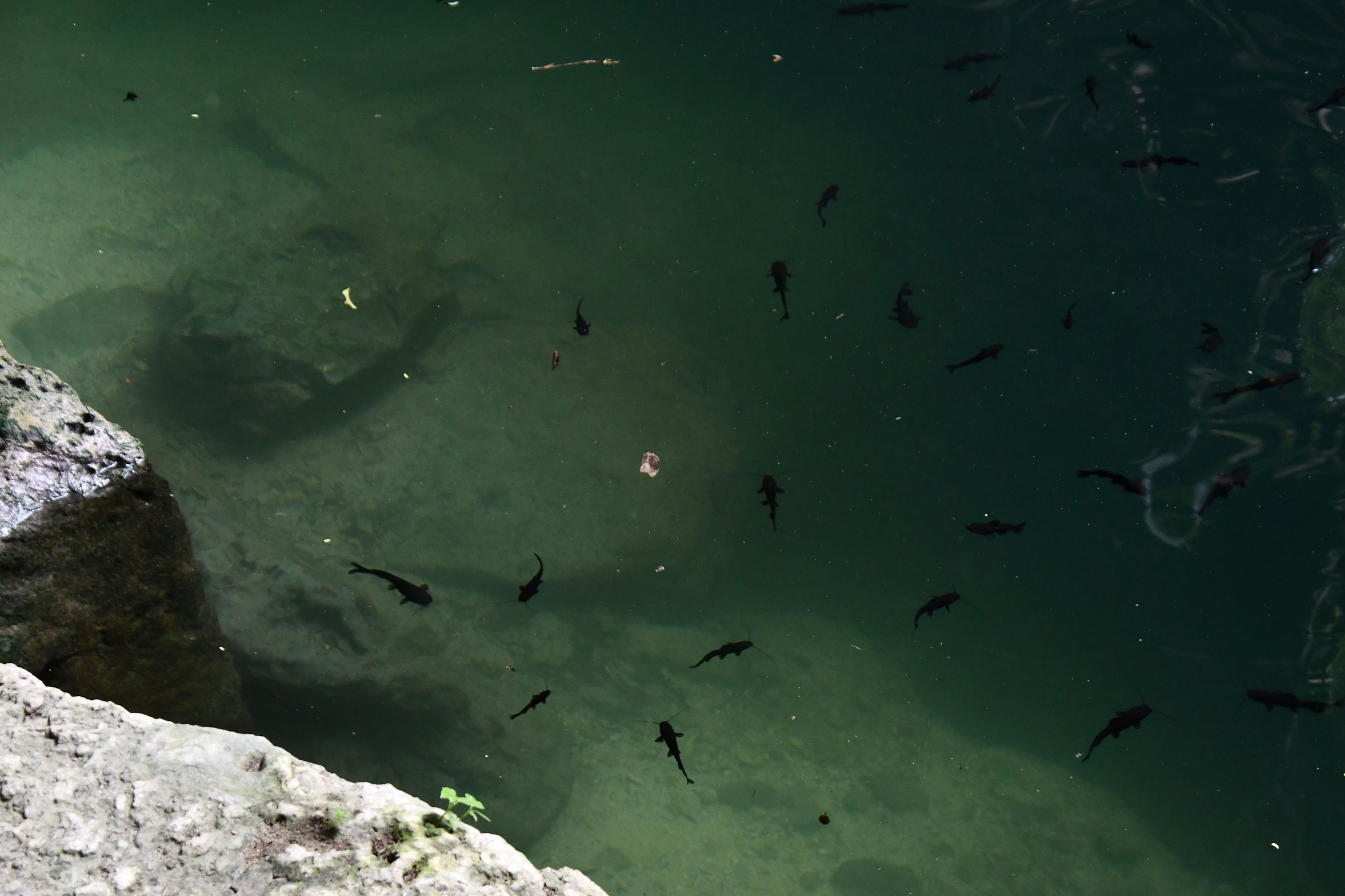 The water in the cenote is clean. For some reason I expected it to be icy cold, but the temperature is comfortable. It’s so clear you can see right through to your legs treading water and the little black catfish. I spent a silly amount of time trying to touch a fish because they are quite relaxed with people and come right up to you. I managed it a couple of times.