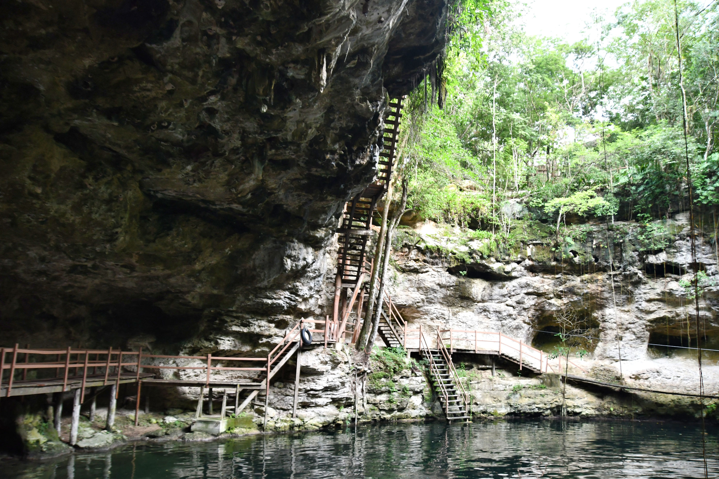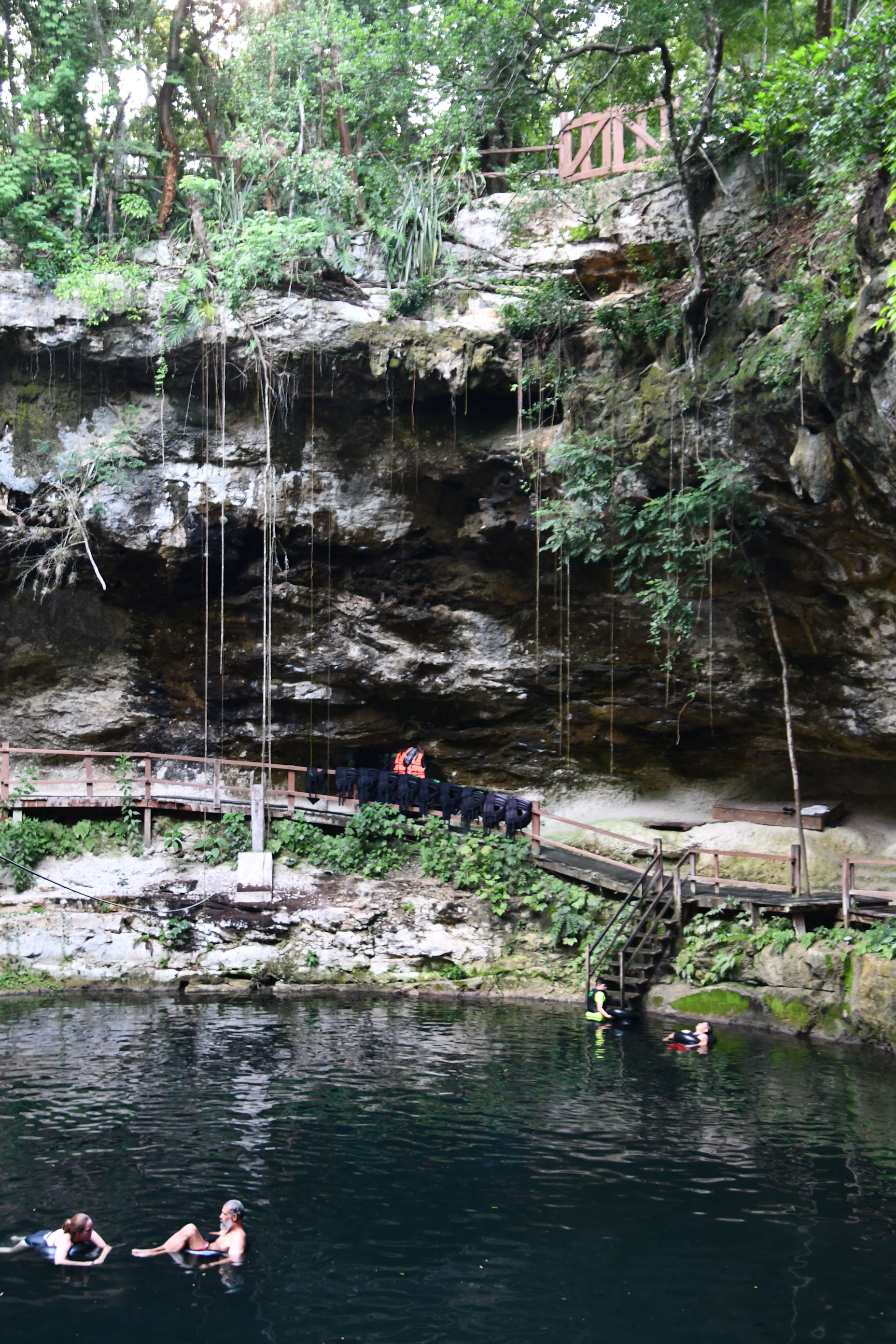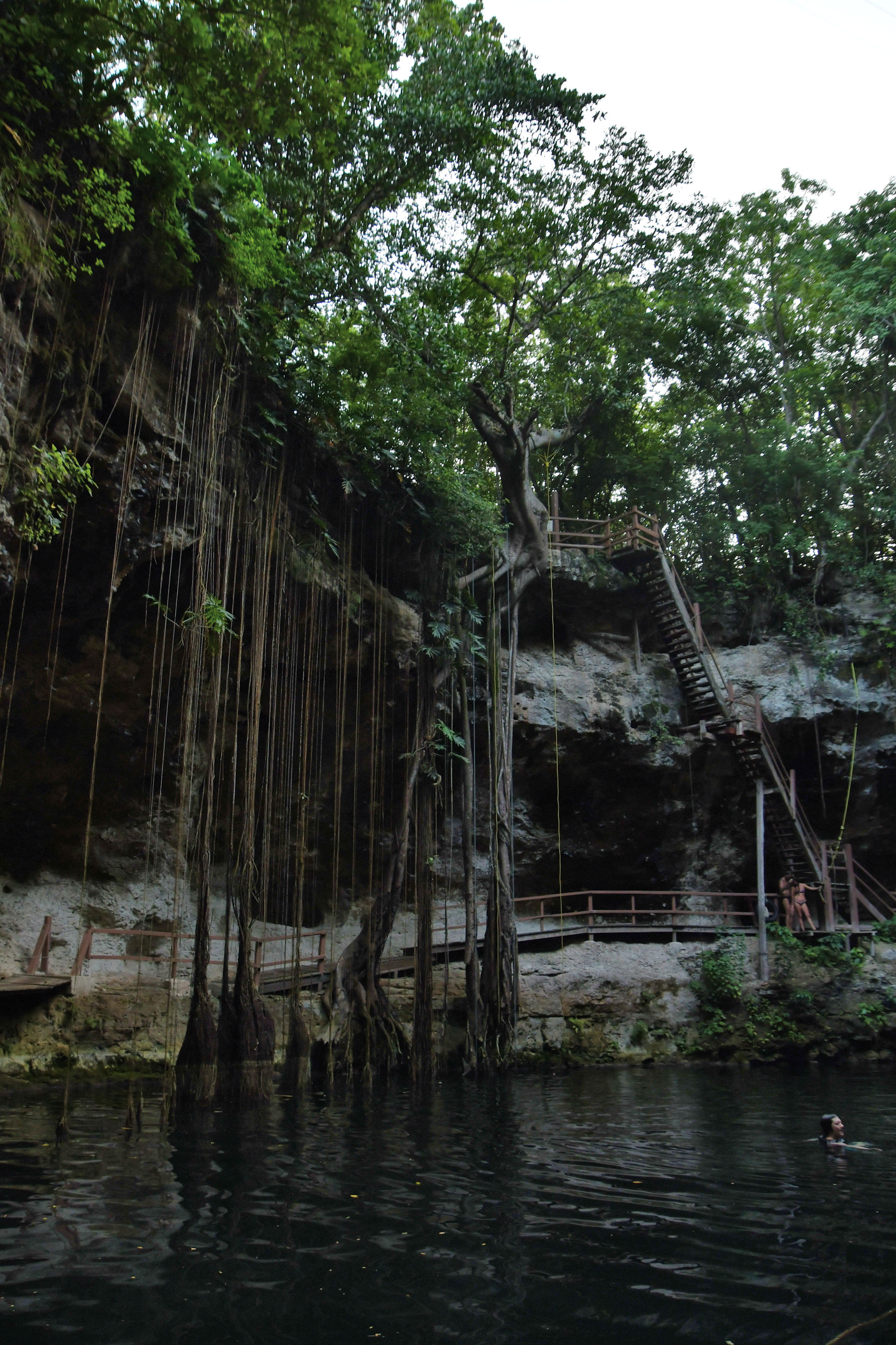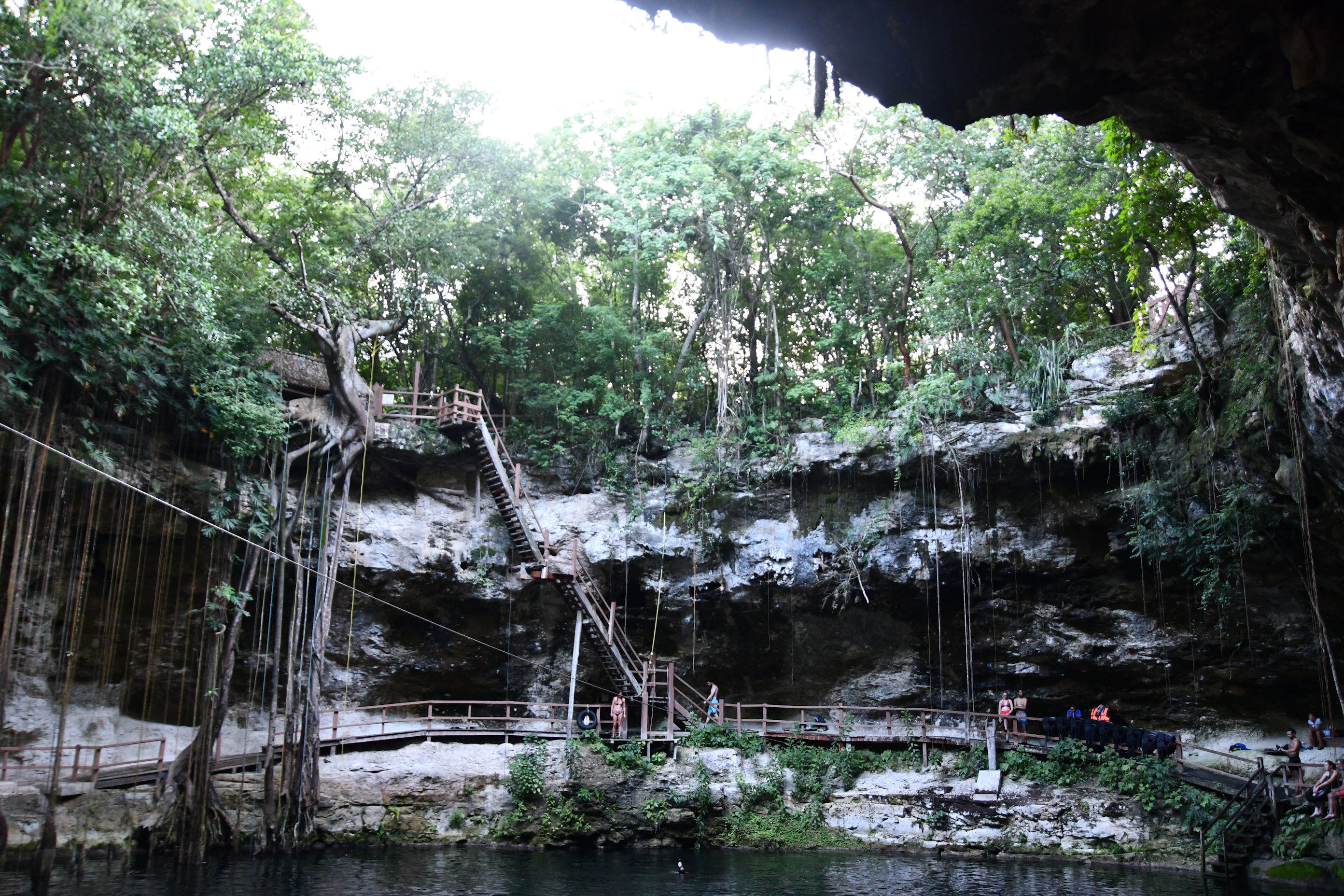 I am certain that more popular, expensive cenotes with more tourists will have a less-steep access. This one, like I said, was in a nature preserve, so they were trying to keep it less developed, but still fun. The trade off here was: hardly any people! As you see from the video, there were only two people when we arrived. By the time we left, there were about twelve people in there, including us.