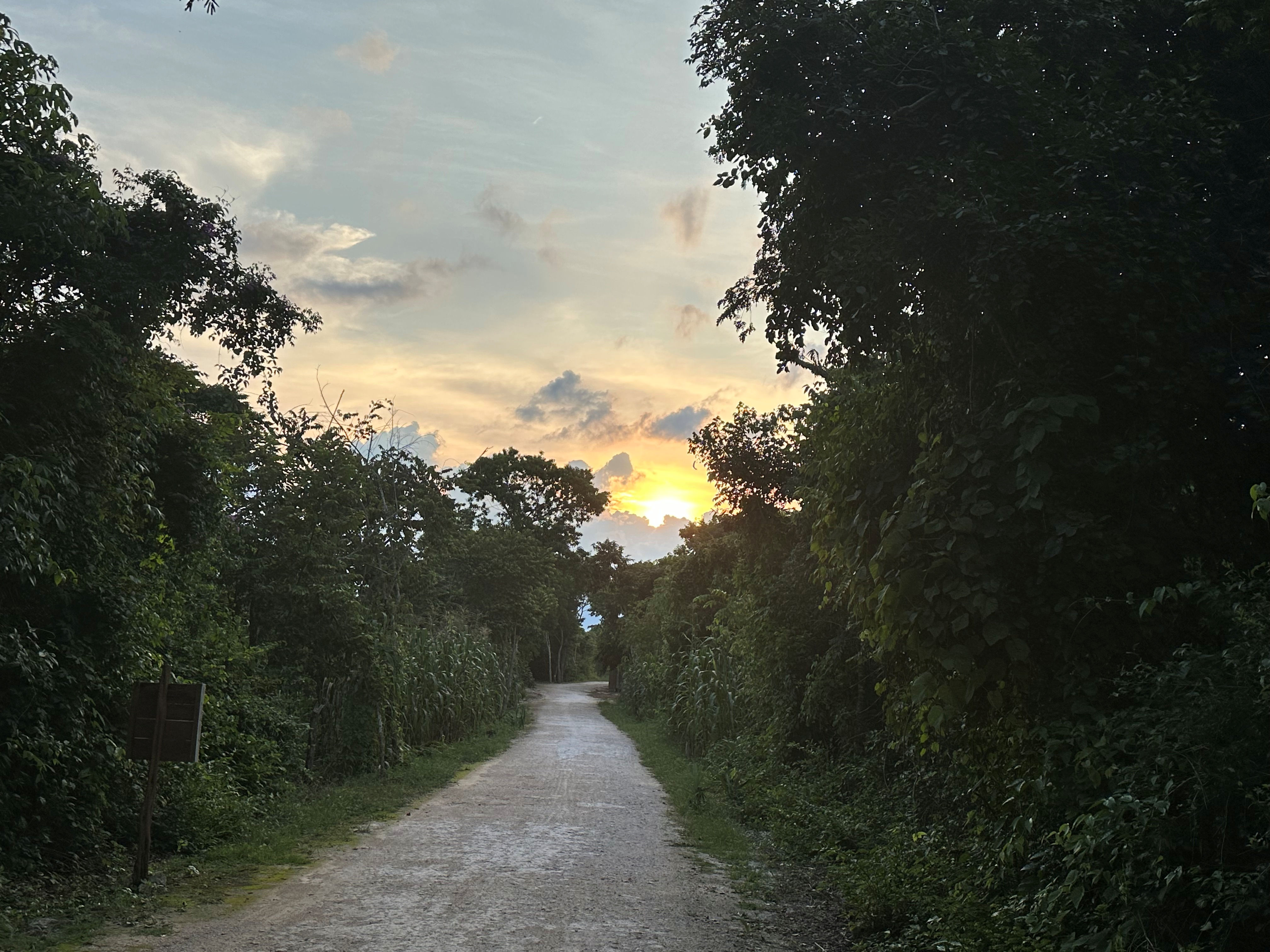 We traveled the same road we had been on that morning, but at 4 pm the checkpoint I had mentioned in my last post was gone. We drove past the paved parking lot for Ek’ Balam and continued another mile and a half to a second parking lot that was much smaller and made of packed dirt. Entrance to the cenote was inexpensive, but also, when we left around 6 pm and no one was around. So my guess is that entrance is free if you arrive late in the day. I wonder if it’s possible to explore Ek’ Balam after 6 pm too?