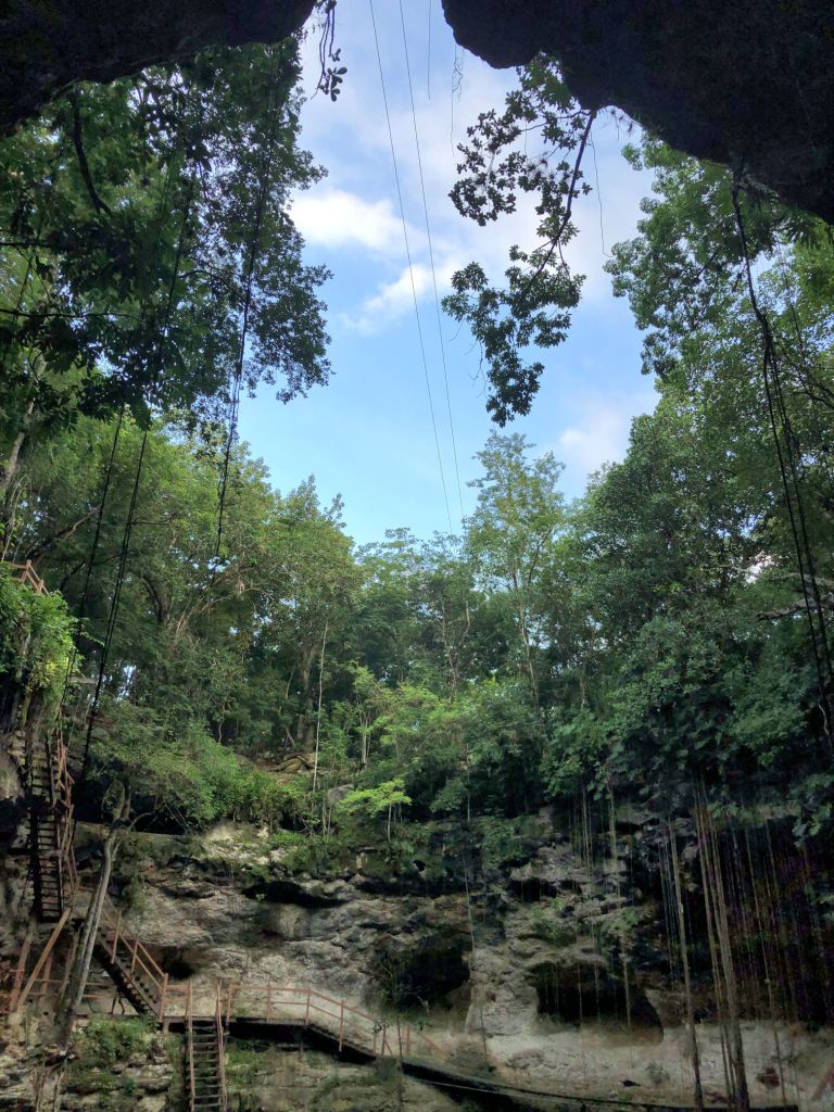 I heard about cenotes for the first time in my life last year from my Spanish textbook! As soon as I saw photos, I became a little obsessed. I’m so happy that Pedro and Liam were game to join me on my quest to experience something none of us knew anything about. And, oh yes, swimming in the cool water, in the shady hole was a perfect end activity for the day.