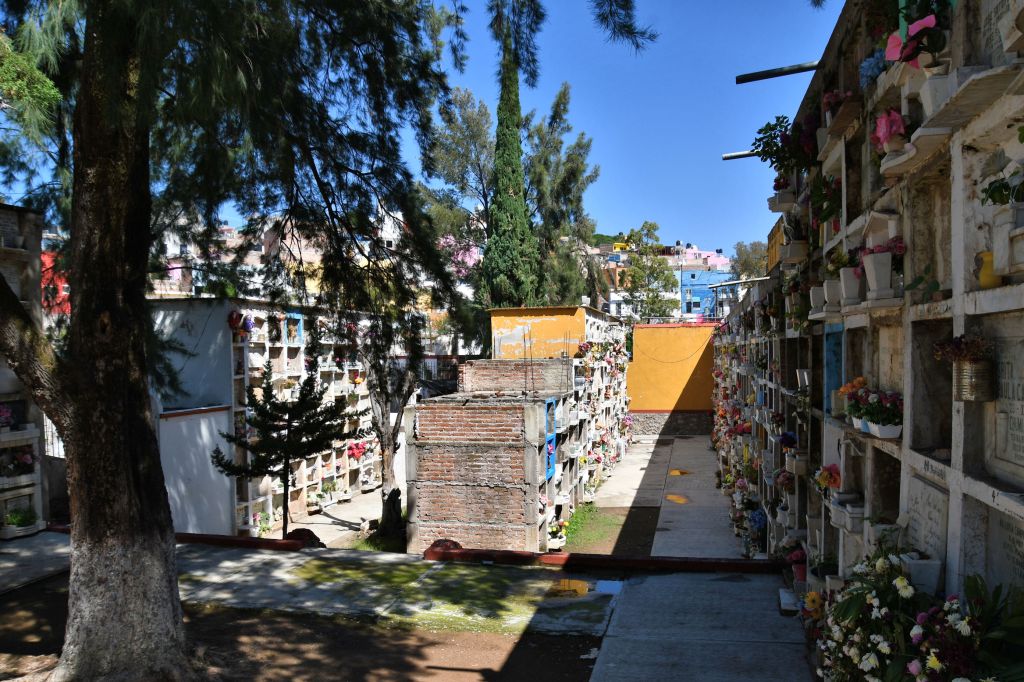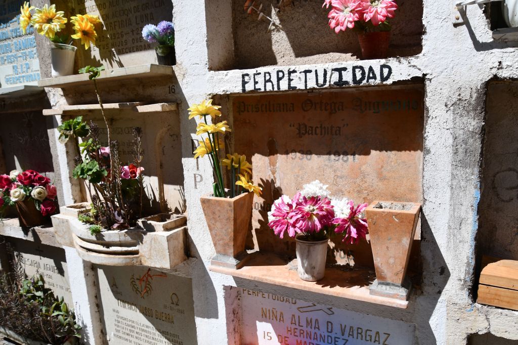 We walked a short distance up the hill from the well-placed flower shop to the Panteón. On the way, we were treated to new magnificent views of the city and the mountains beyond.