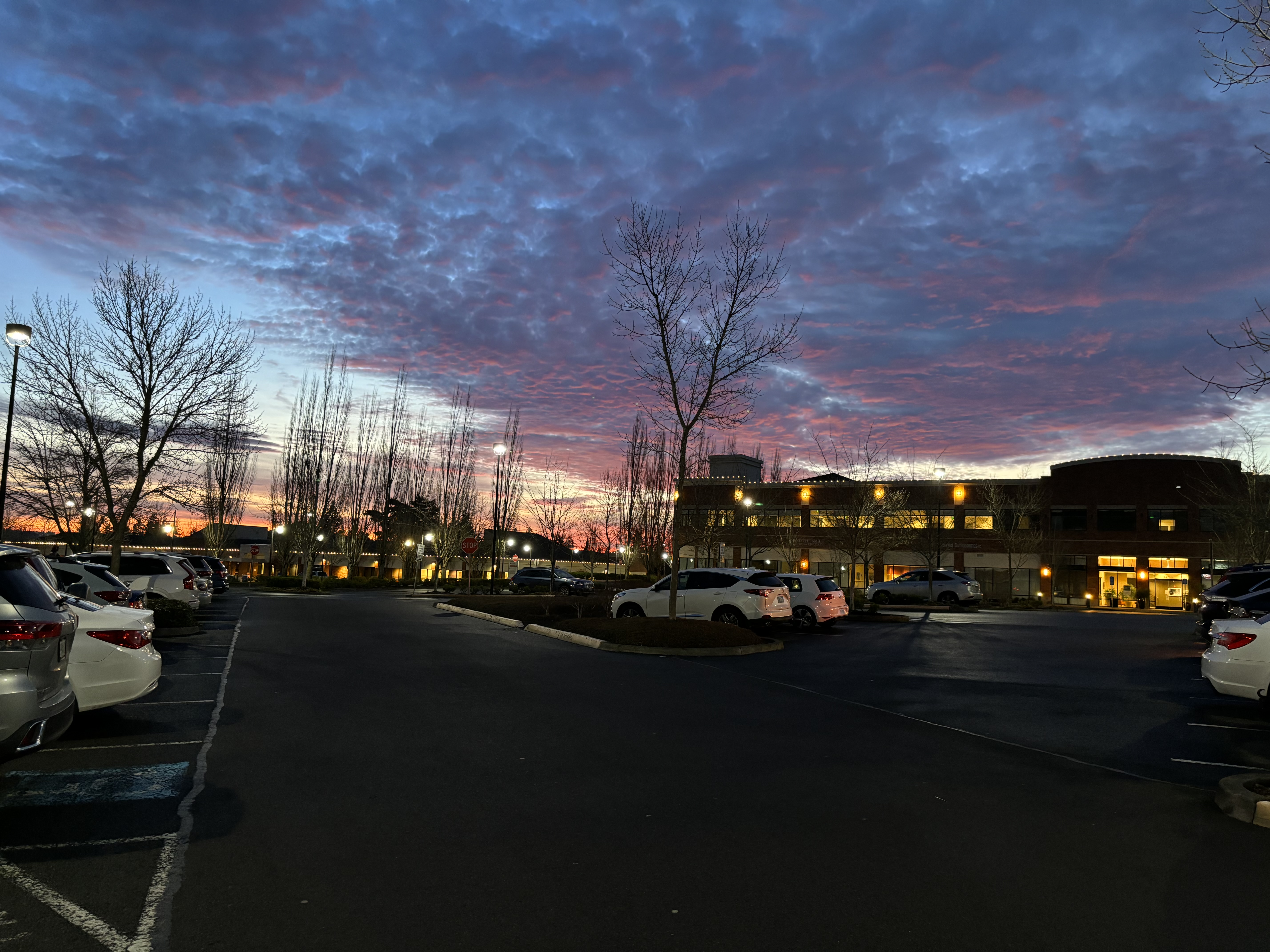 There is only one occasion when he leaves the house and I could get an hour to myself, and yet I can’t bring myself to part with him at those times. That is going to the gym. I love spending an hour with him at 6 am in the company of a hundred sweaty strangers. We make eye contact across the room now and then, and smile, and I’m so happy that he’s the sweaty one I get to go home with. Recently, leaving the building at about 7:15 am and crossing the parking lot to our car has coincided with dawn, and the sky has been magnificent on more than one occasion.
