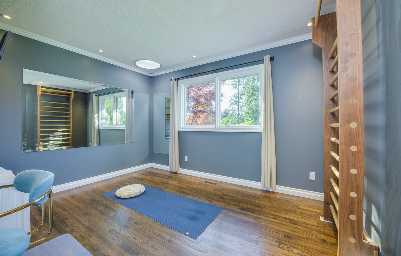 The space in the new house that we decided to use as an office is the room above, formerly a workout room. When we moved in, the two mirrors here: a full length mirror and a huge 6 foot X 4 foot mirror, were here. Both glued to the wall. Pedro and I both set up our desks in here. Mine is now in the right corner that you see above, so I can look out the window. Pedro has moved his desk four times, trying to get things right.