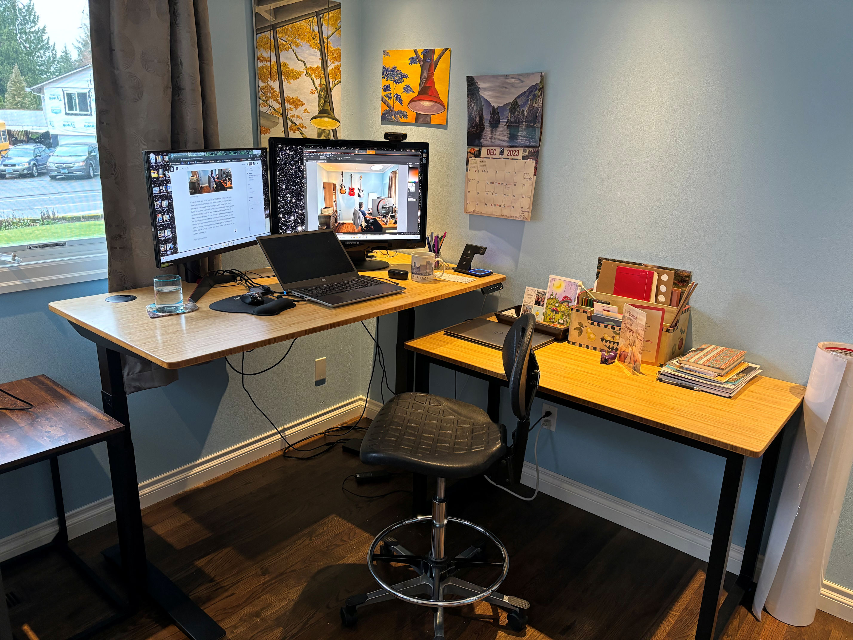 Ha ha. Yes, there is potential to be in a bubble, but the honest reason for the giant screens is poor vision. His entire company switched to work-at-home in 2020, and has decided to sell their downtown Portland building and never go back. They’ve since opened up employment opportunities to people around the globe. This has helped them to attract the candidates they keep hiring. Anyway, everyone Pedro works with is on computers all day long, so this is their new office environment. Not like things used to be…