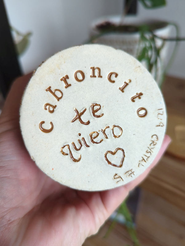 I decorated the bottom of my mug too. It says I love you to Pedro, that’s my pet name that I call him. I am disappointed that the studio carved extra stuff into it. They didn’t tell us they would do that.