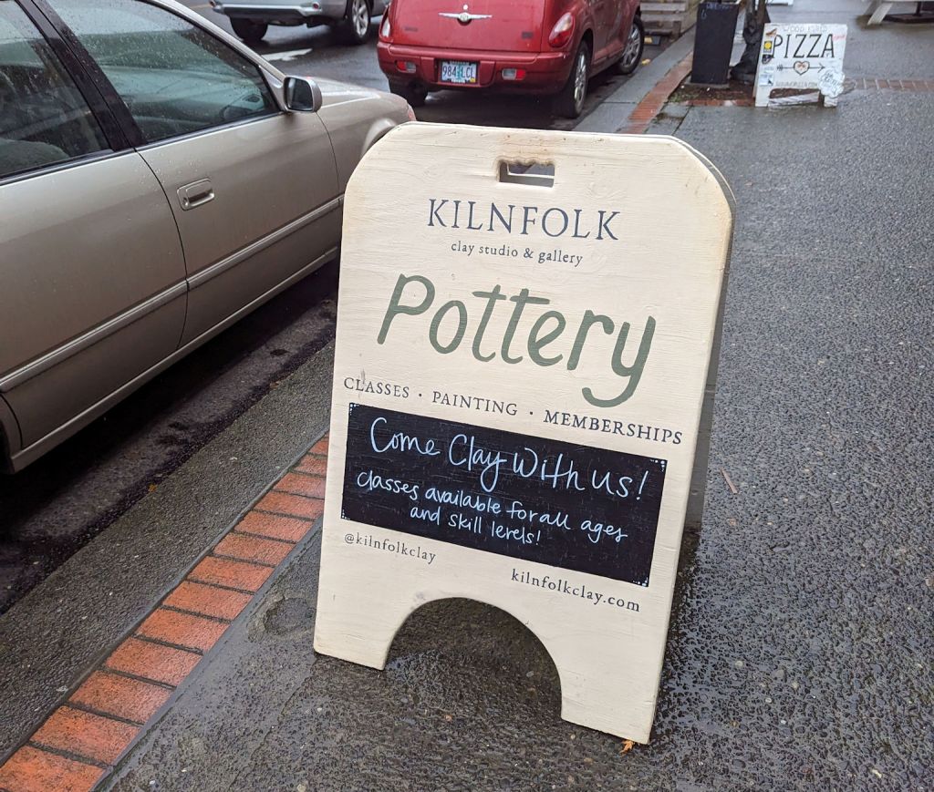 The occasion was to celebrate Maria’s birthday, and that ended up being a popular Saturday. Lots of people showed up in the clay studio and the guy – I can’t remember his name – ran around helping everybody get started and answering questions and keeping it fun.