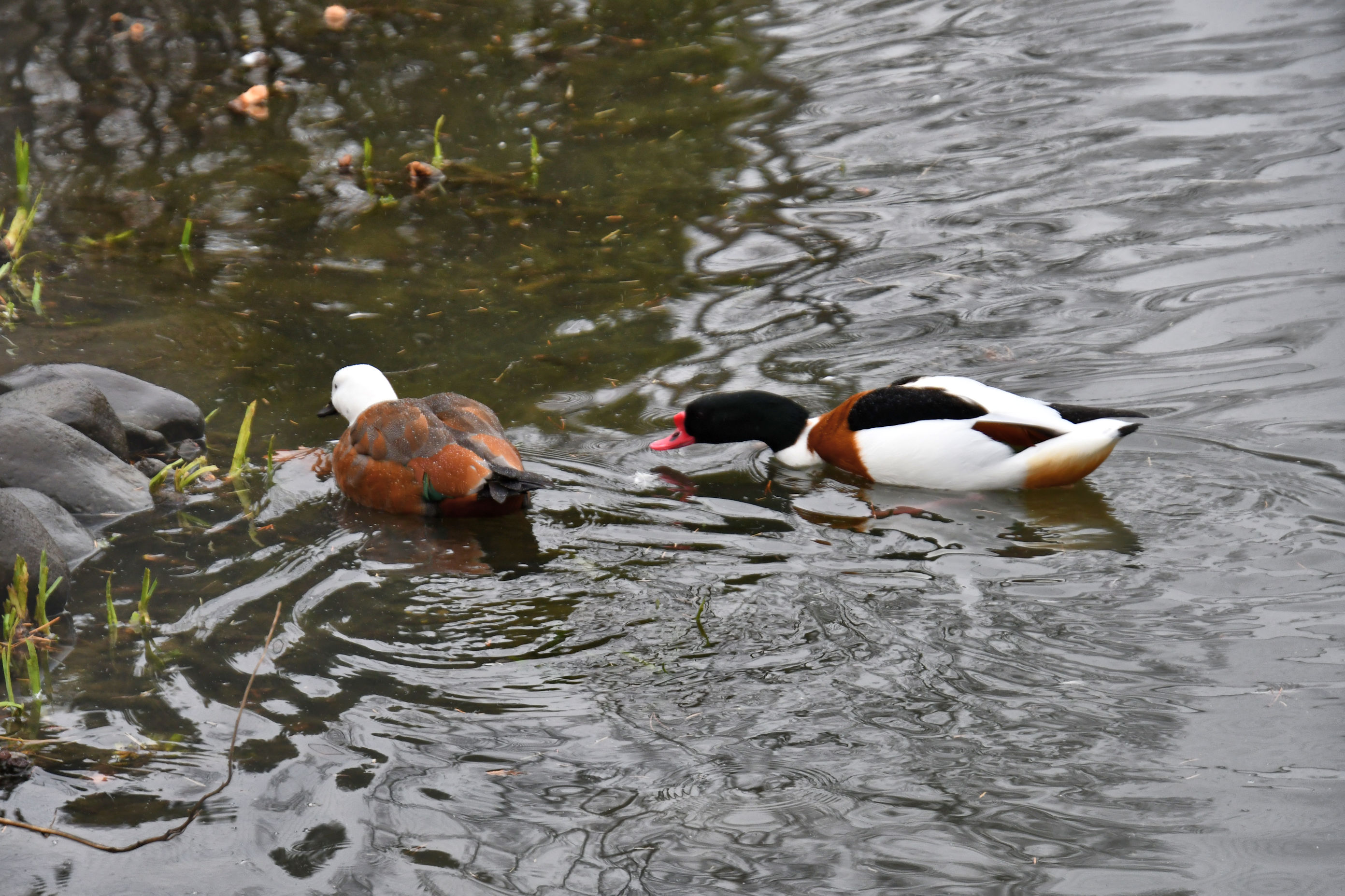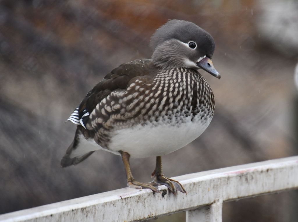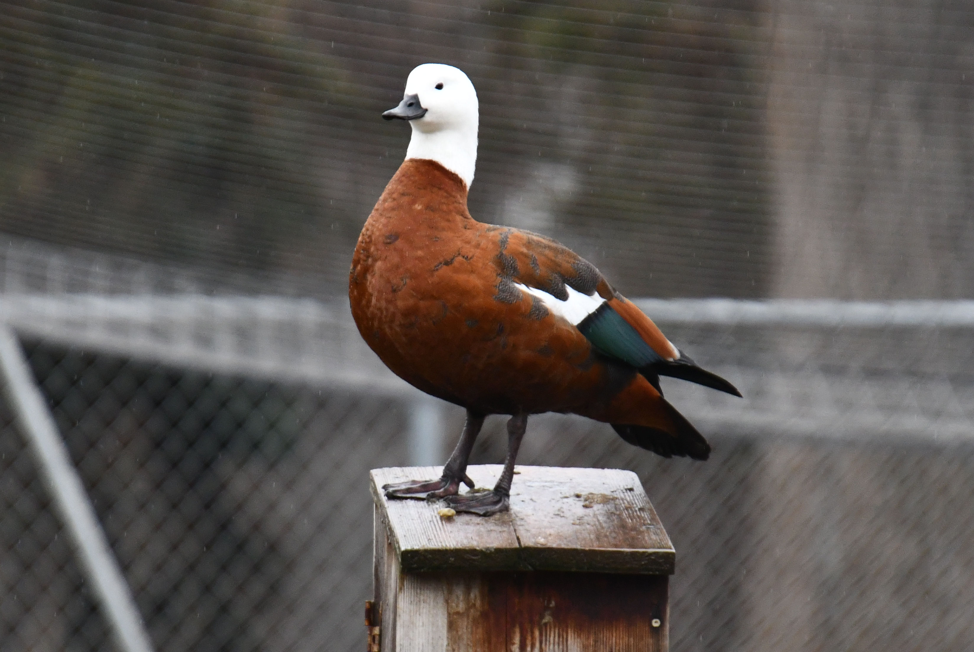 I found it difficult to photograph in the rain and between chain links. The fence surrounding the water had larger holes, so I had the opportunity to photograph through the holes. But the smaller enclosures for the non-water birds had tightly woven metal fencing and it was hopeless.
