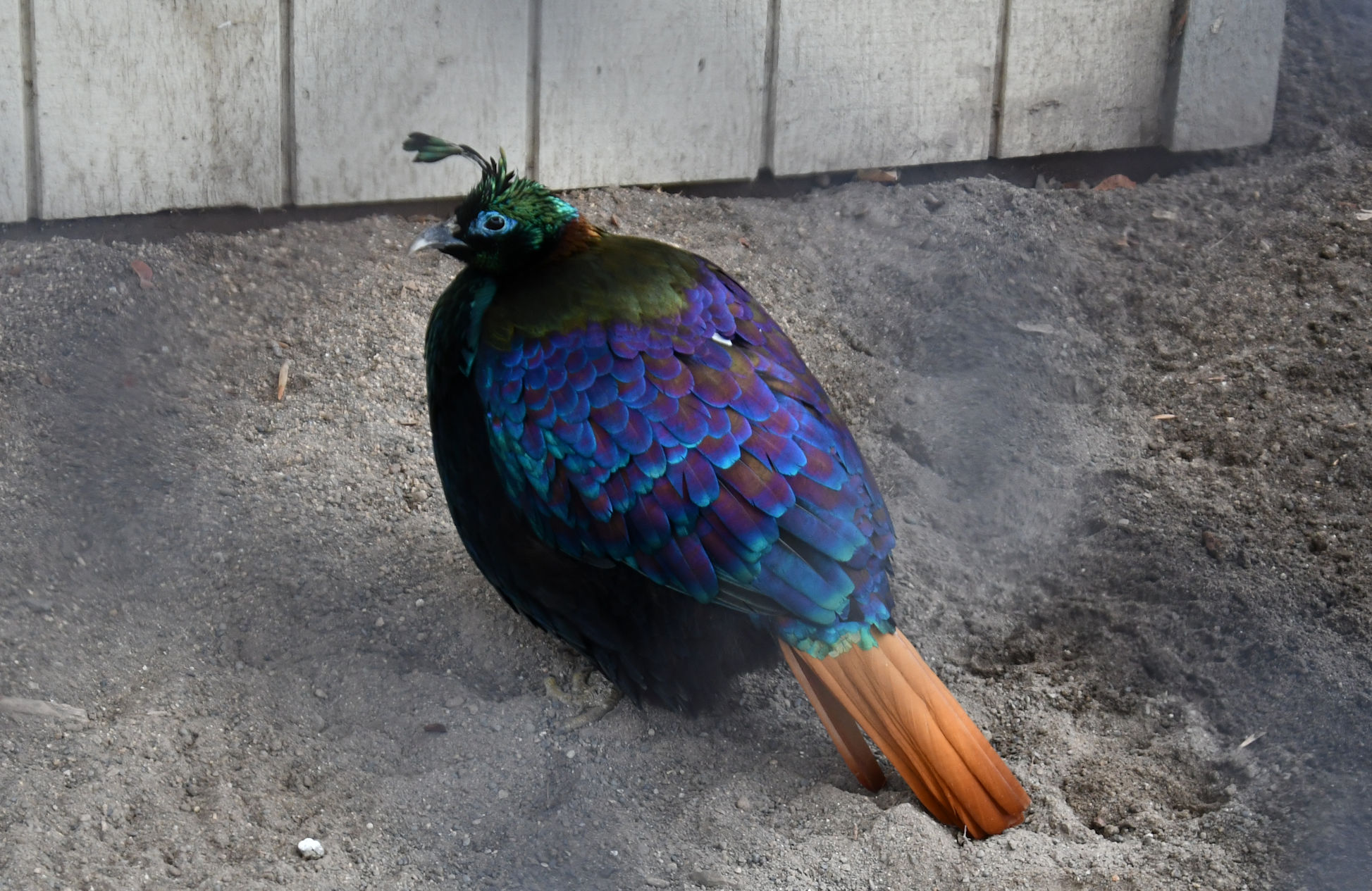 He’s almost astonishing! It was probably some kind of mating display, though the season seems off. We watched him until he relaxed and laid all his feathers back down flat.