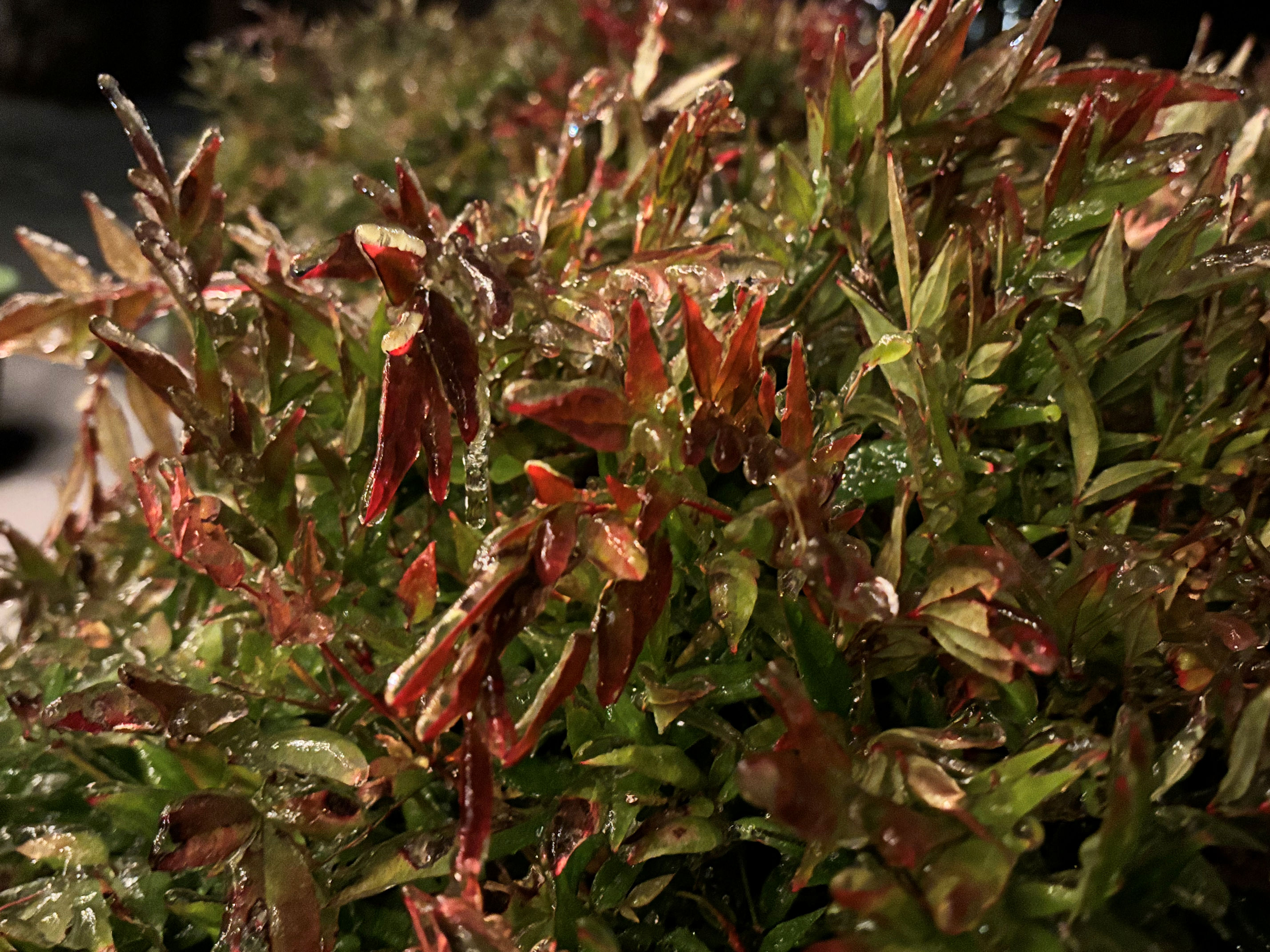 Yesterday, as of about 8 am, the cold snap broke and things were quickly melting. Everyone – humans and critters – are relieved. We ran around outside in the dark, photographing the ice before it disappeared.