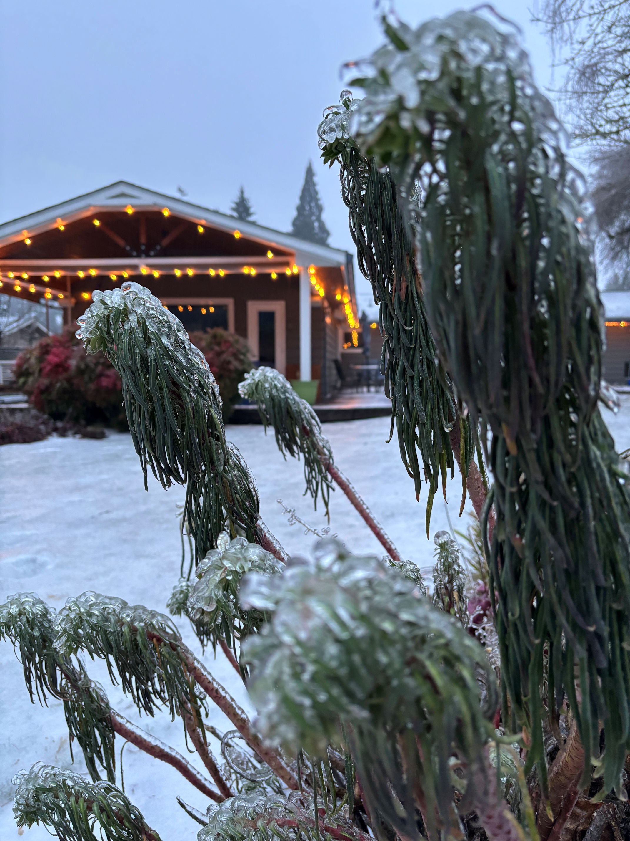 We are fortunate this time around! Though many in the Portland area lost power in all this ice, we never did. Many had trees crash onto their property, their cars, and even their homes. We escaped that fate. And we are all healthy and well, as are our kids. Not everyone can say that and my love goes out to those who lost someone this week.