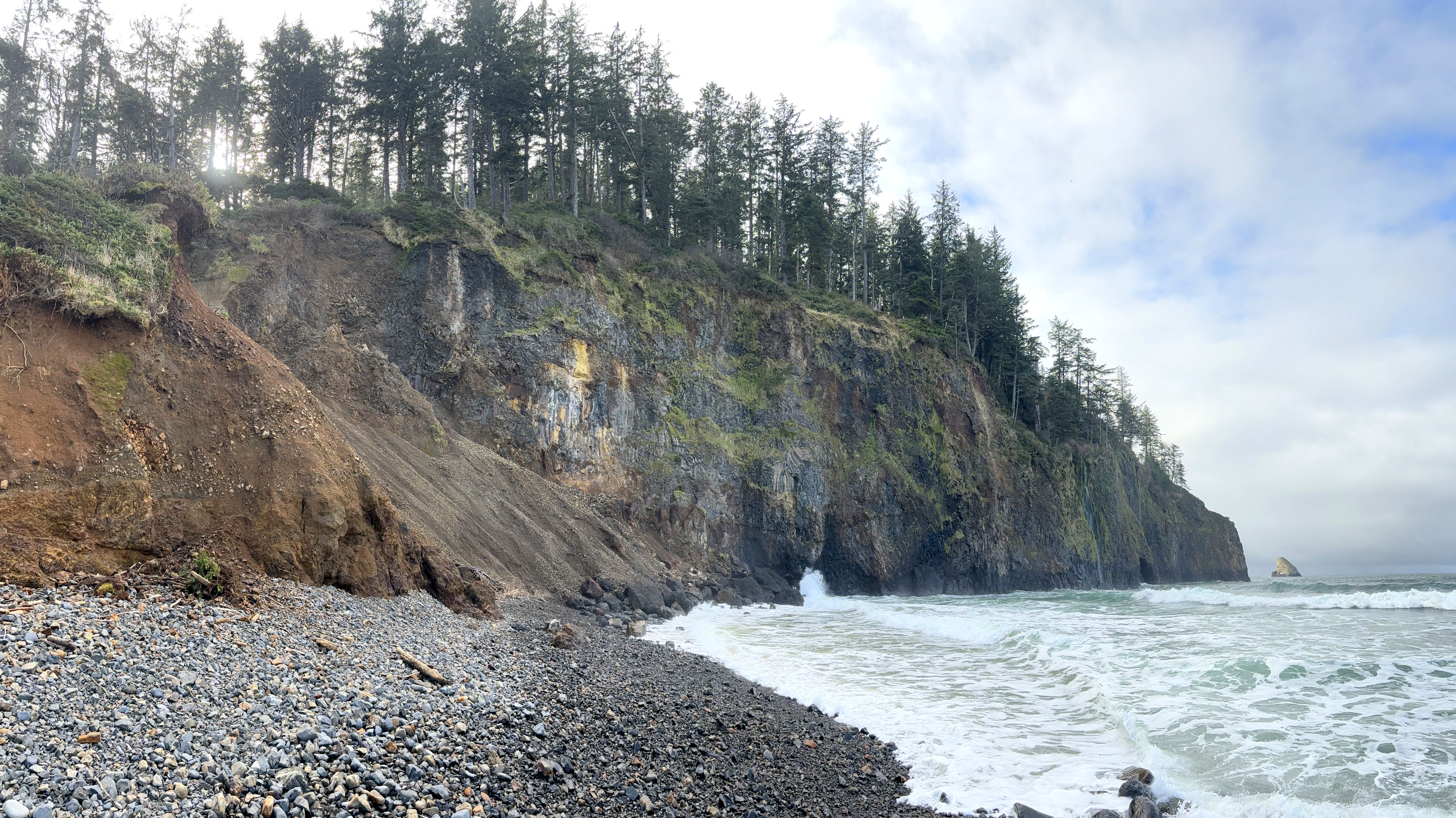 Eventually, we had descended all the way down the very steep cliff to the shore of the Pacific Ocean.
