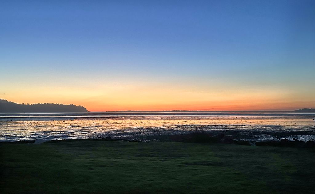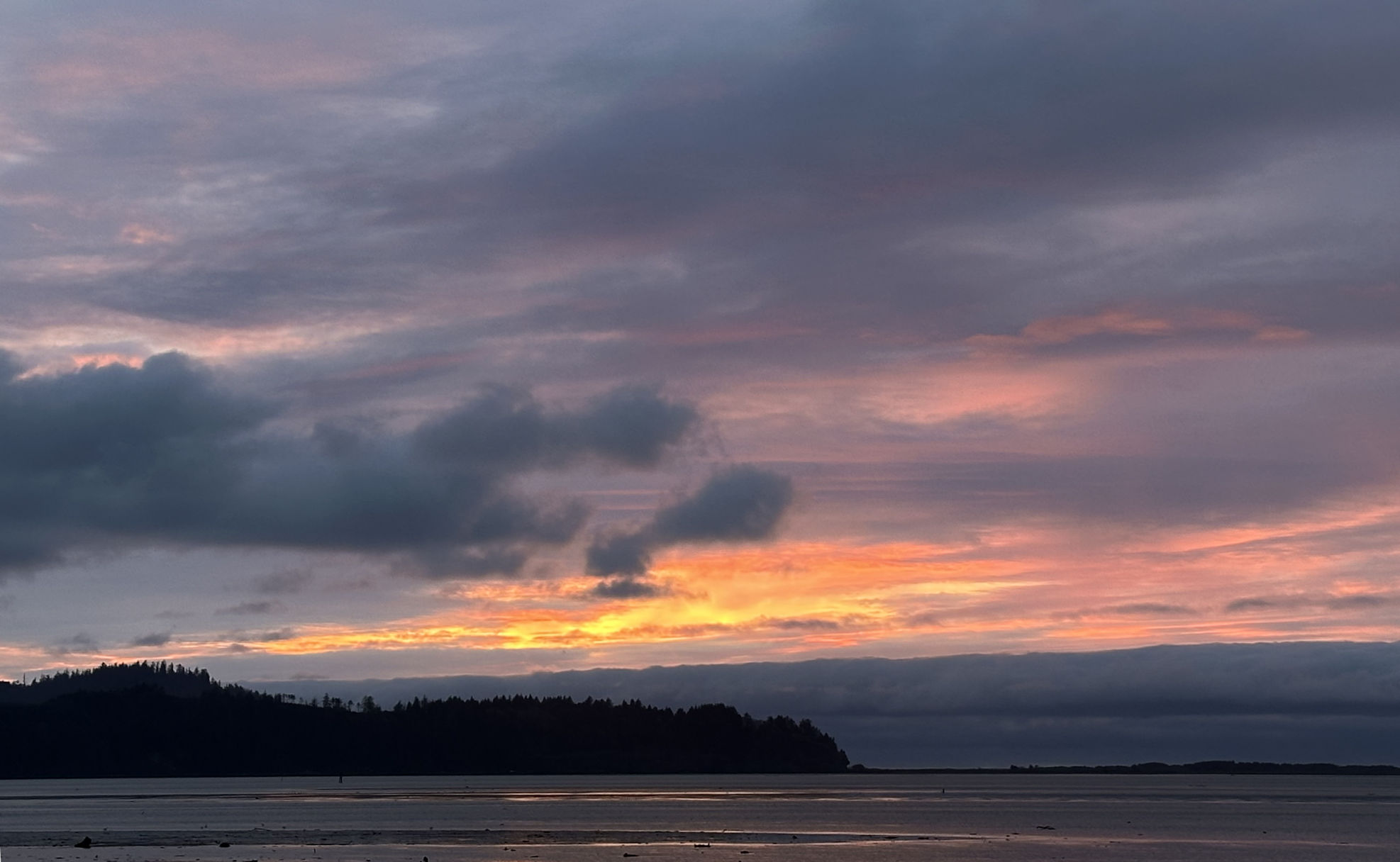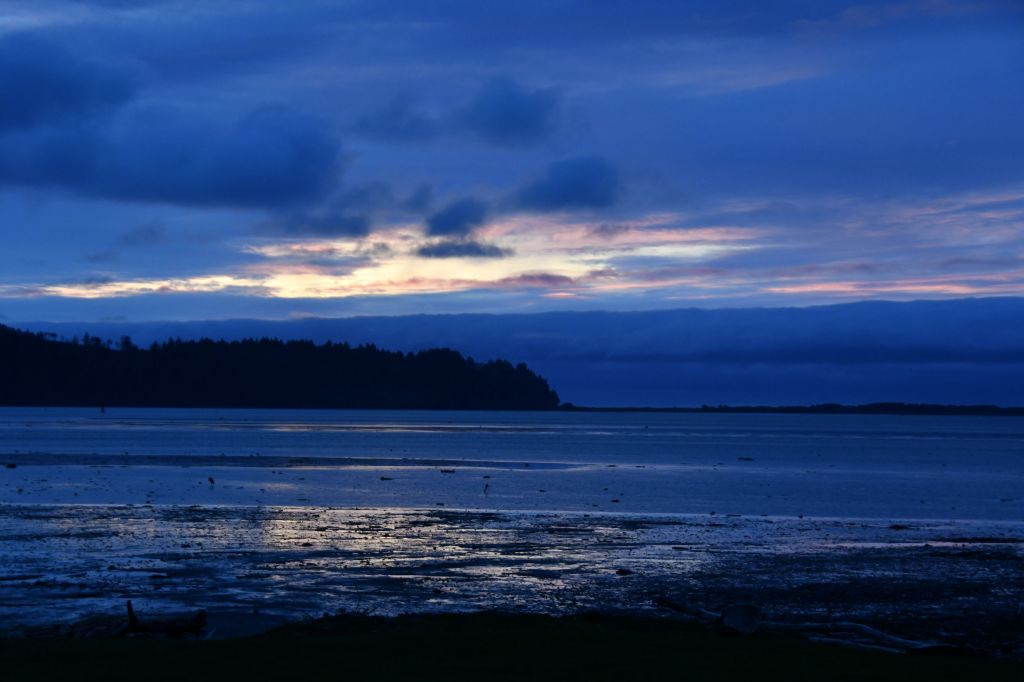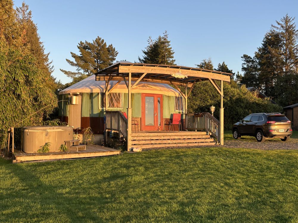 After our hike at Cape Meares, and then beers at de Garde, we went back to the yurt for dinner. I had planned some great meals and brought all the food with us and used the little kitchen to prepare them. After we ate, we went back outside to enjoy the setting sun over the bay.