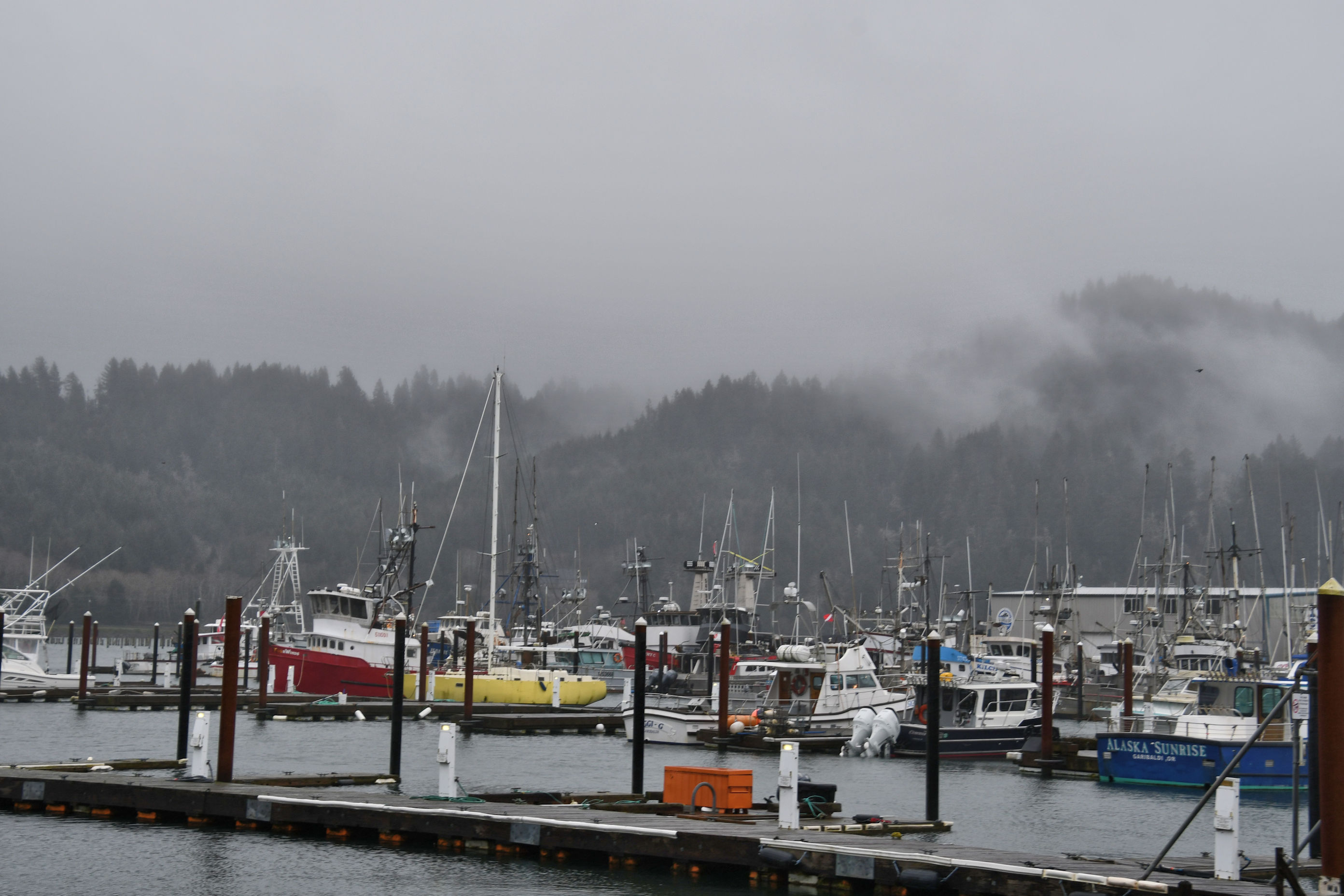 Saturday morning was foggy and cloudy and a little drizzly. We had to search for a while to find a breakfast place, which surprised us for a weekend at the coast – a typical vacation weekend place for Portlanders. We tried the bay first, thinking seafood breakfast, but everything was closed. We finally found an open diner/bar in Bay City.