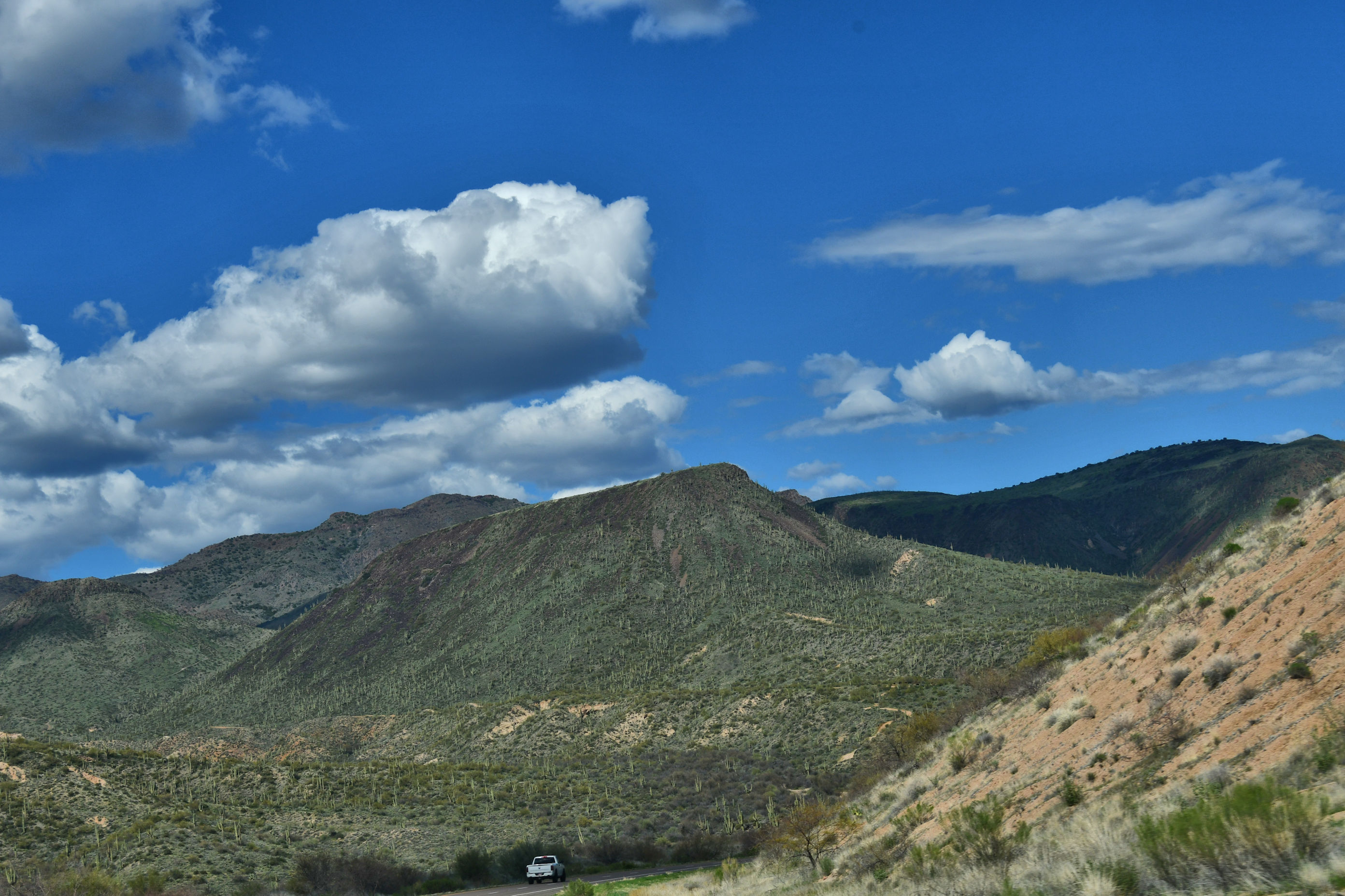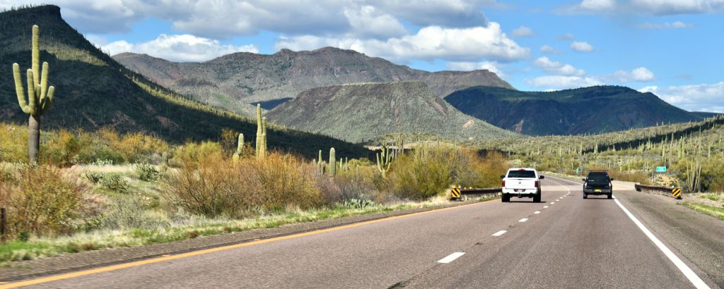 I hugged my friends goodbye and headed off to the Heard Museum, covered in yesterday’s post. Then I hit the open highway. I love love love road trips through the Western US. I drove with one hand on the steering wheel and one hand taking shots through the windshield with my camera.