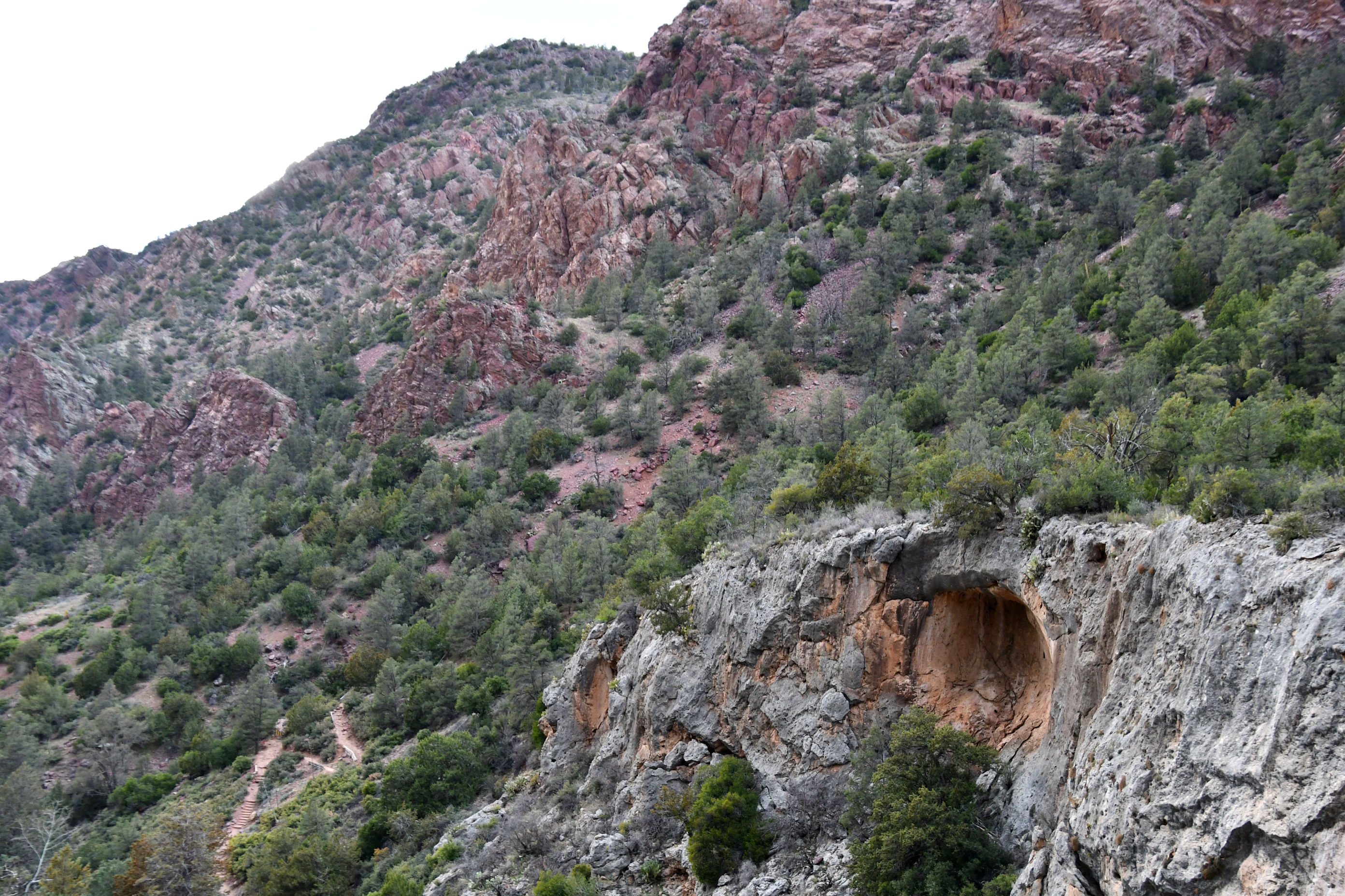 …when I saw a Park Ranger zipping around on his little 4-wheeler, locking gates to the trails entrances. D’oh!! If I hadn’t been lollygagging, I could have easily made it onto a trail before he showed up. The signs said the trail was only 0.3 miles. I could hike down and back three times before 5pm, and that was frustrating. Then, I saw a couple of guys down below, on the trail, slowly making their way back up. That did it, I was done following rules. The Ranger on his 4-wheeler zoomed away and I went right over to the gate, built with gaping holes in it, and slipped through in a blink.