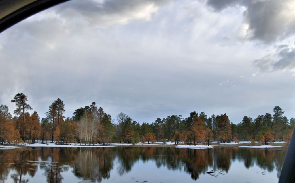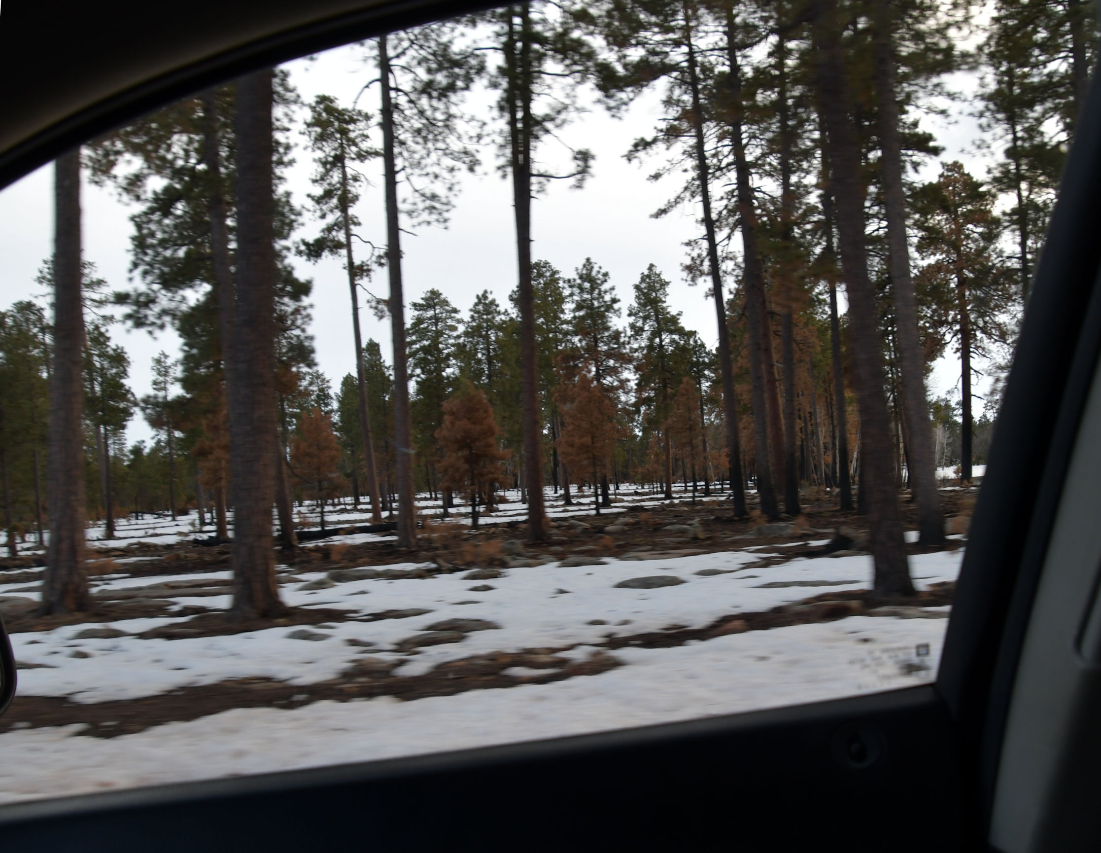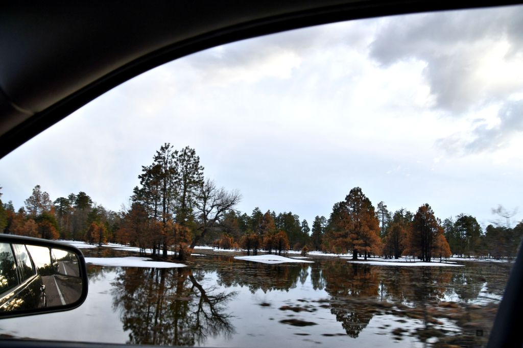 In my blog post yesterday, I noted that I came to Arizona seeking Spring, but I did get a bit of winter while I was there. The following shots were taken with one hand while I was driving, as you can tell: