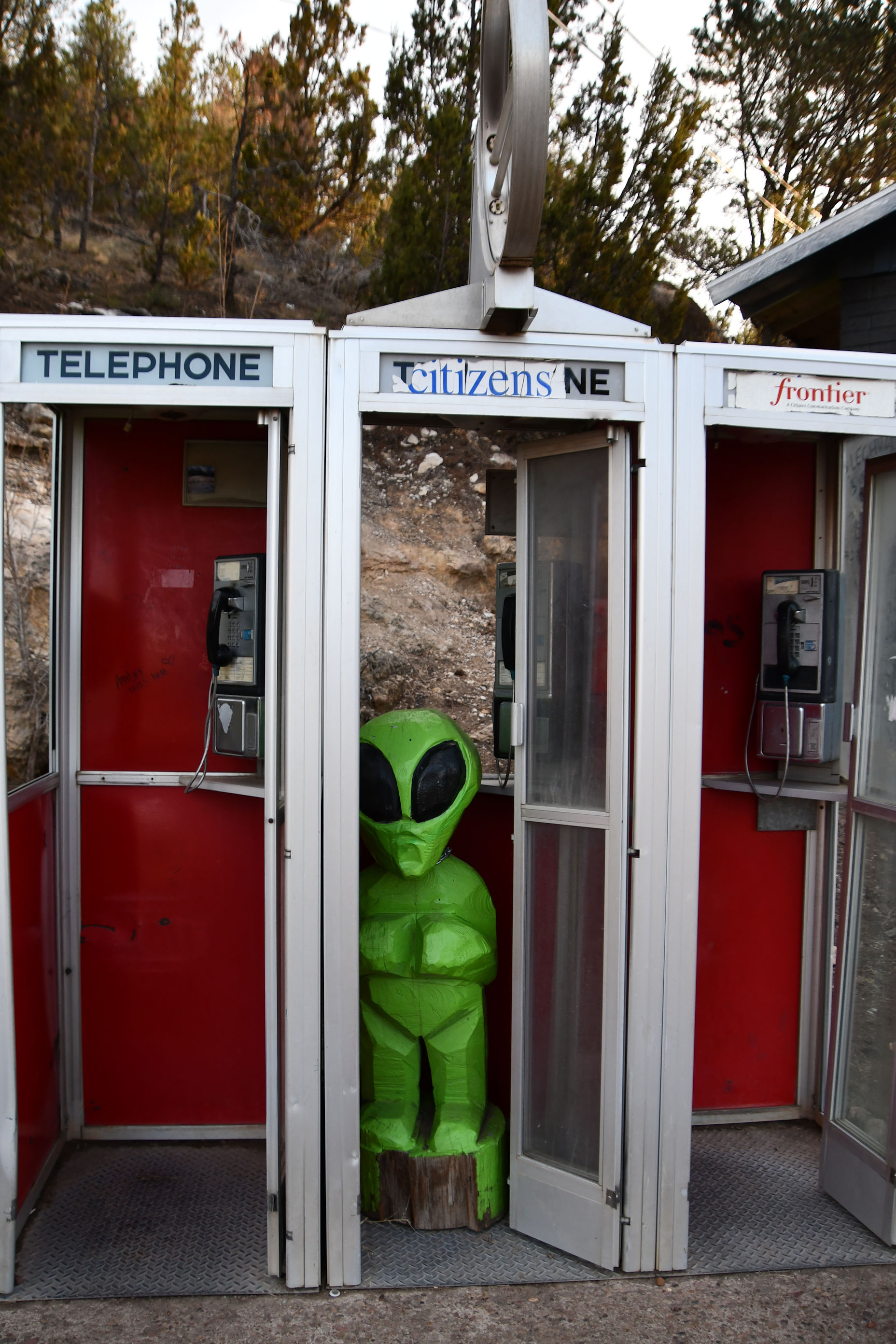I began looking out for the next recommendation from Atlas Obscura. In the town very clunckily named: Heber-Overgaard, was Travis Walton’s phone booth. This registered zero with me, but I thought I would take a photo if I saw it, and look it up later. This is what I saw:
