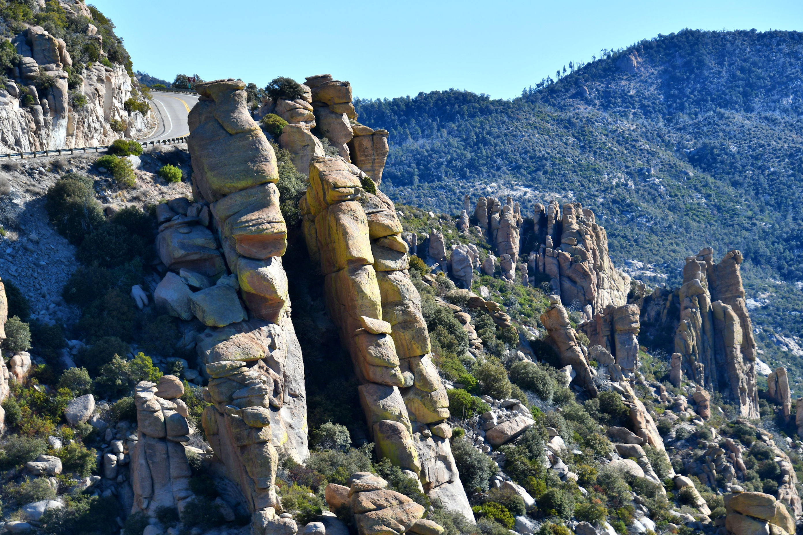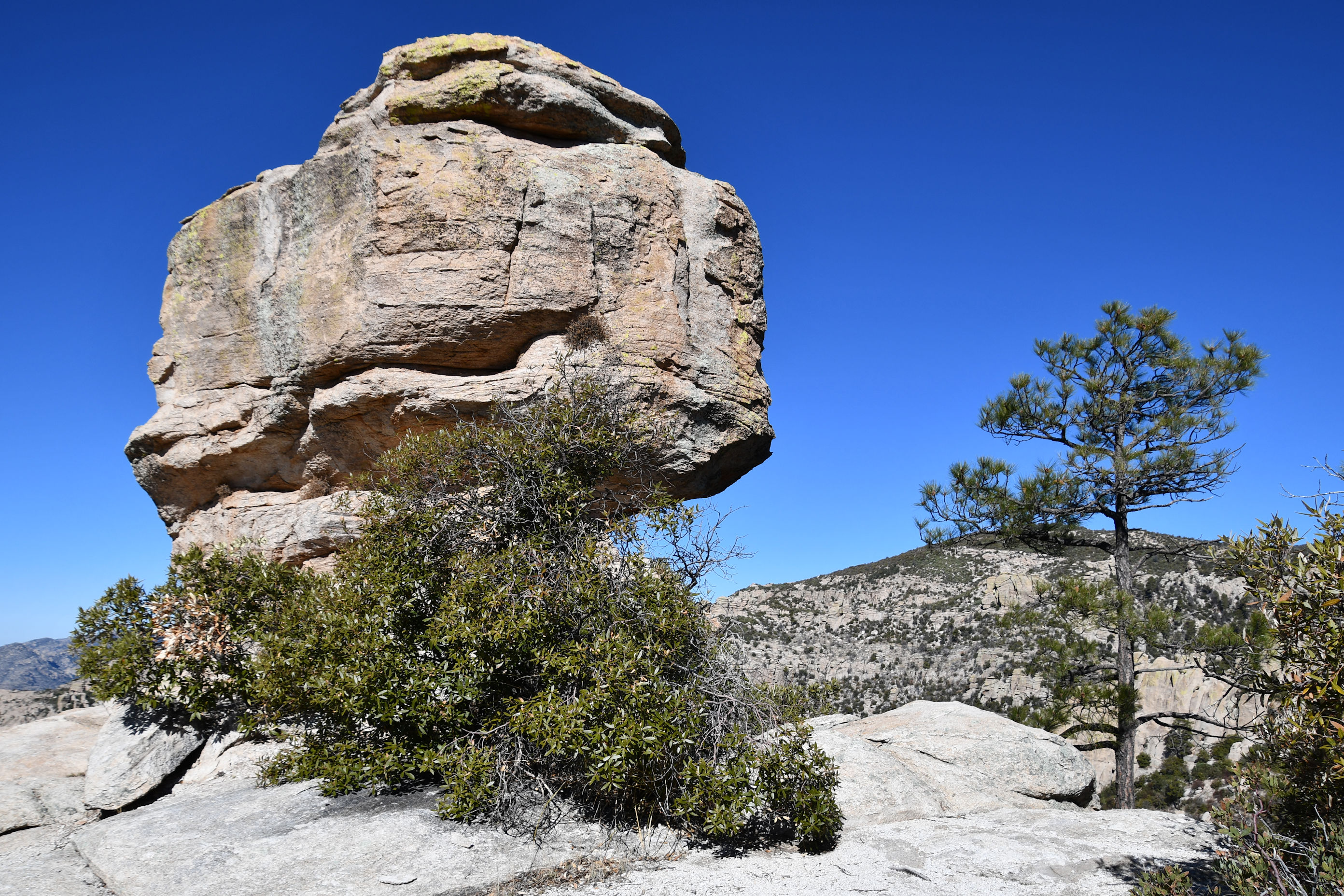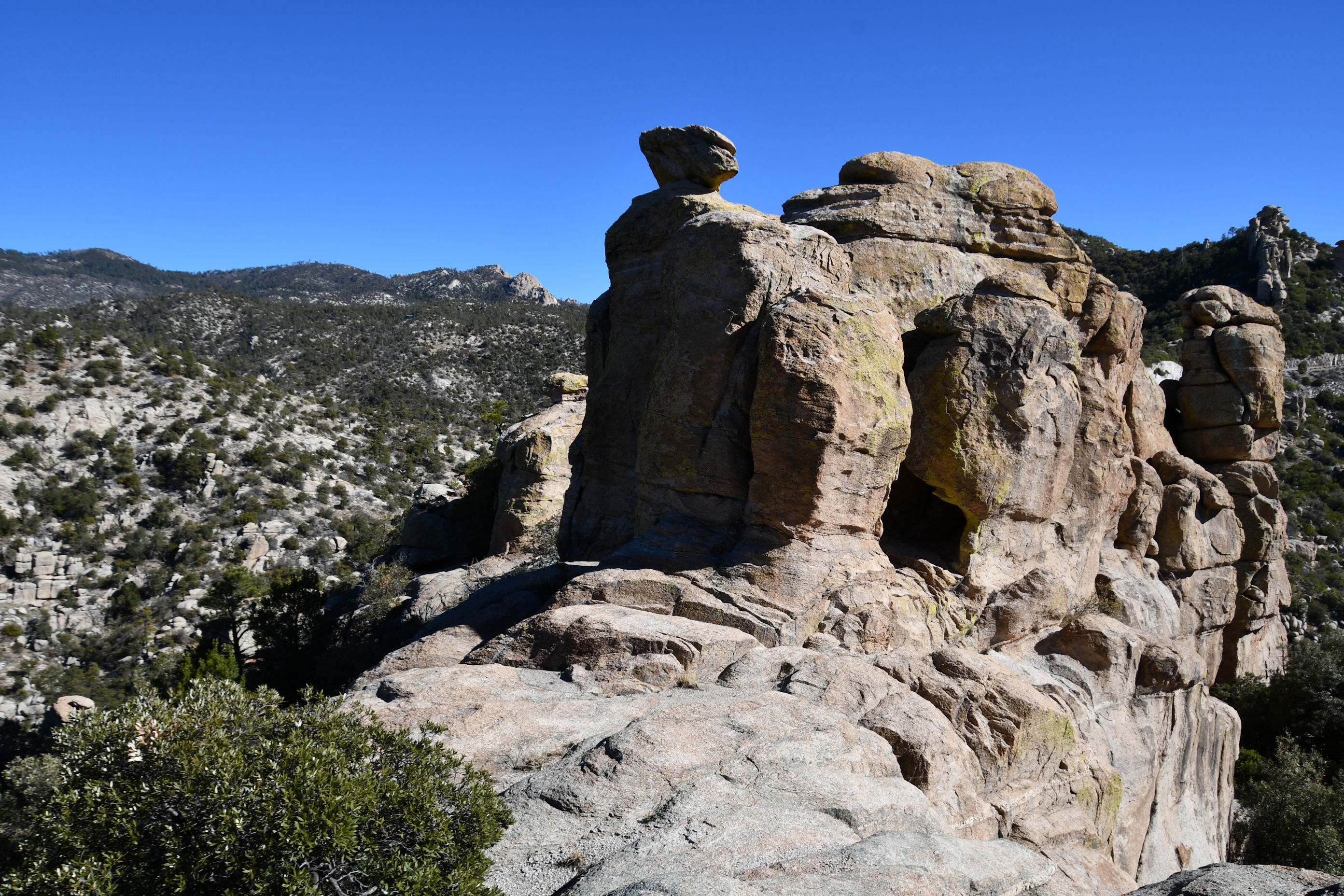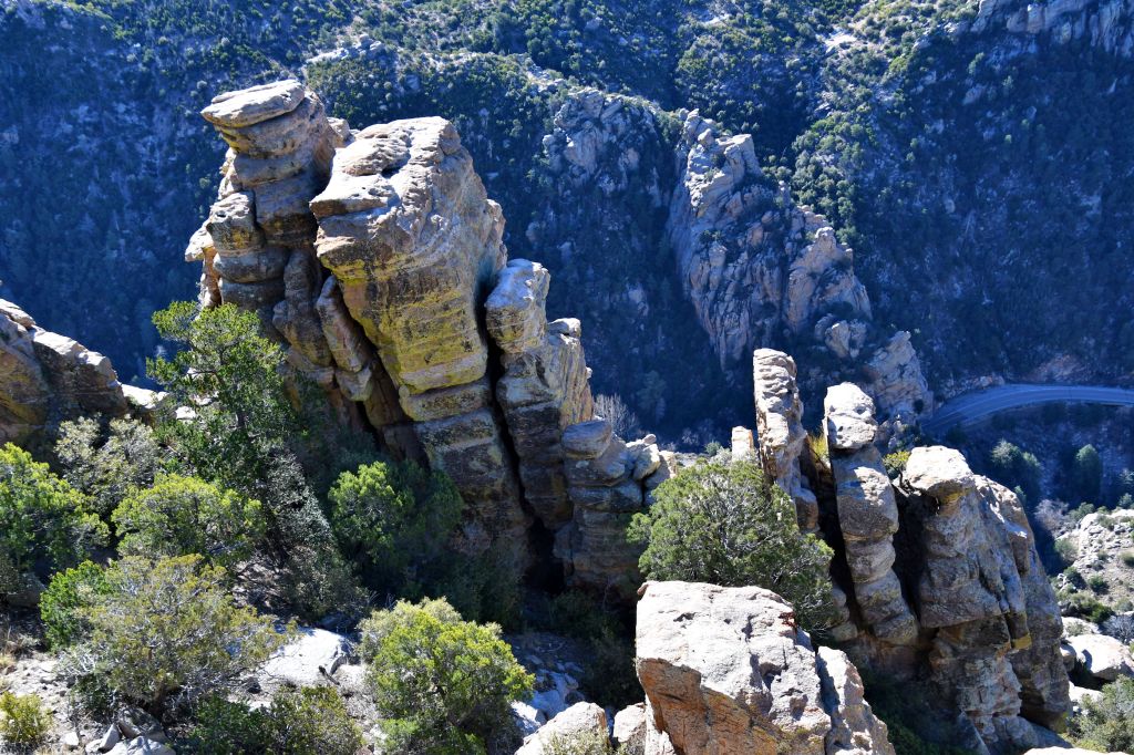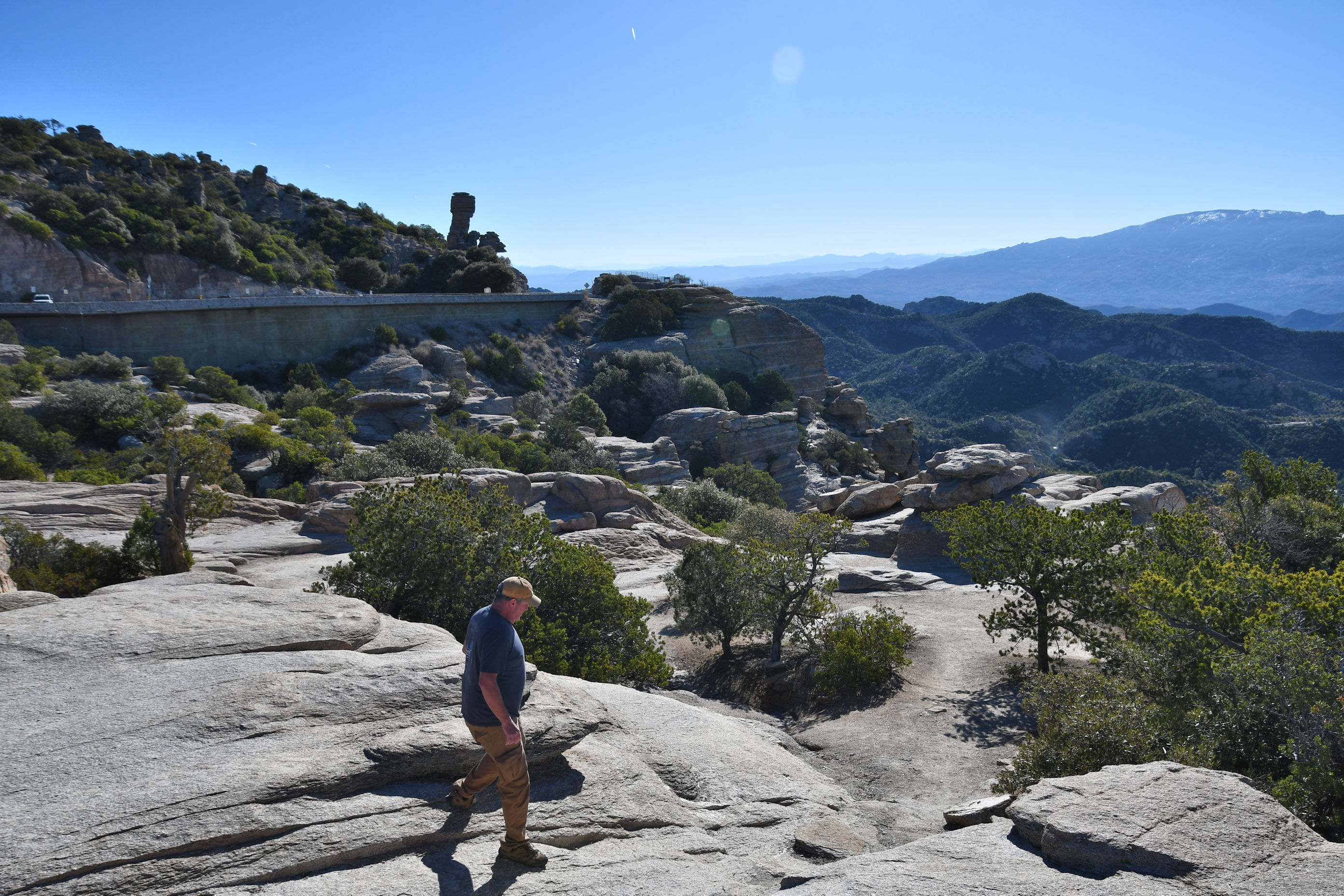 We drove up Mt. Lemmon Highway and parked. When we arrived, we were the only vehicle to pull over. By the time we left, there were a dozen. In the photo below, you can see some tiny people walking on the rocks, sort of near the center of the photo (one is wearing yellow). That is where we took most of the shots you see here. We struck out across the rocks almost as far as we could go. That provides an outstanding view of the valley on three sides of the promontory.