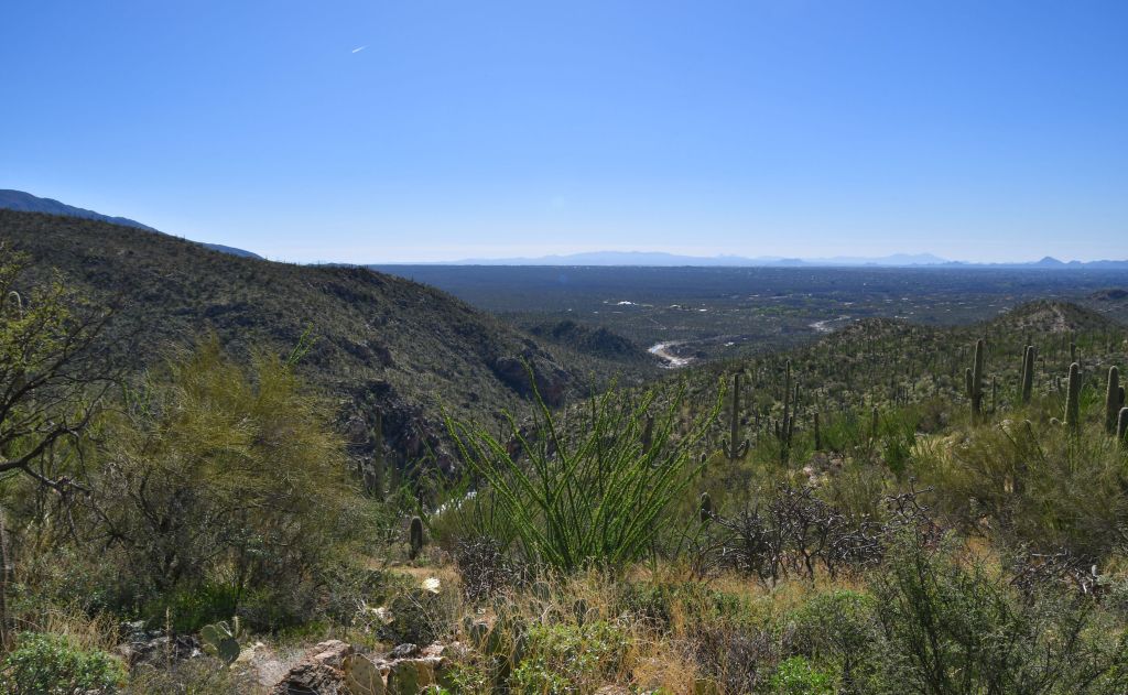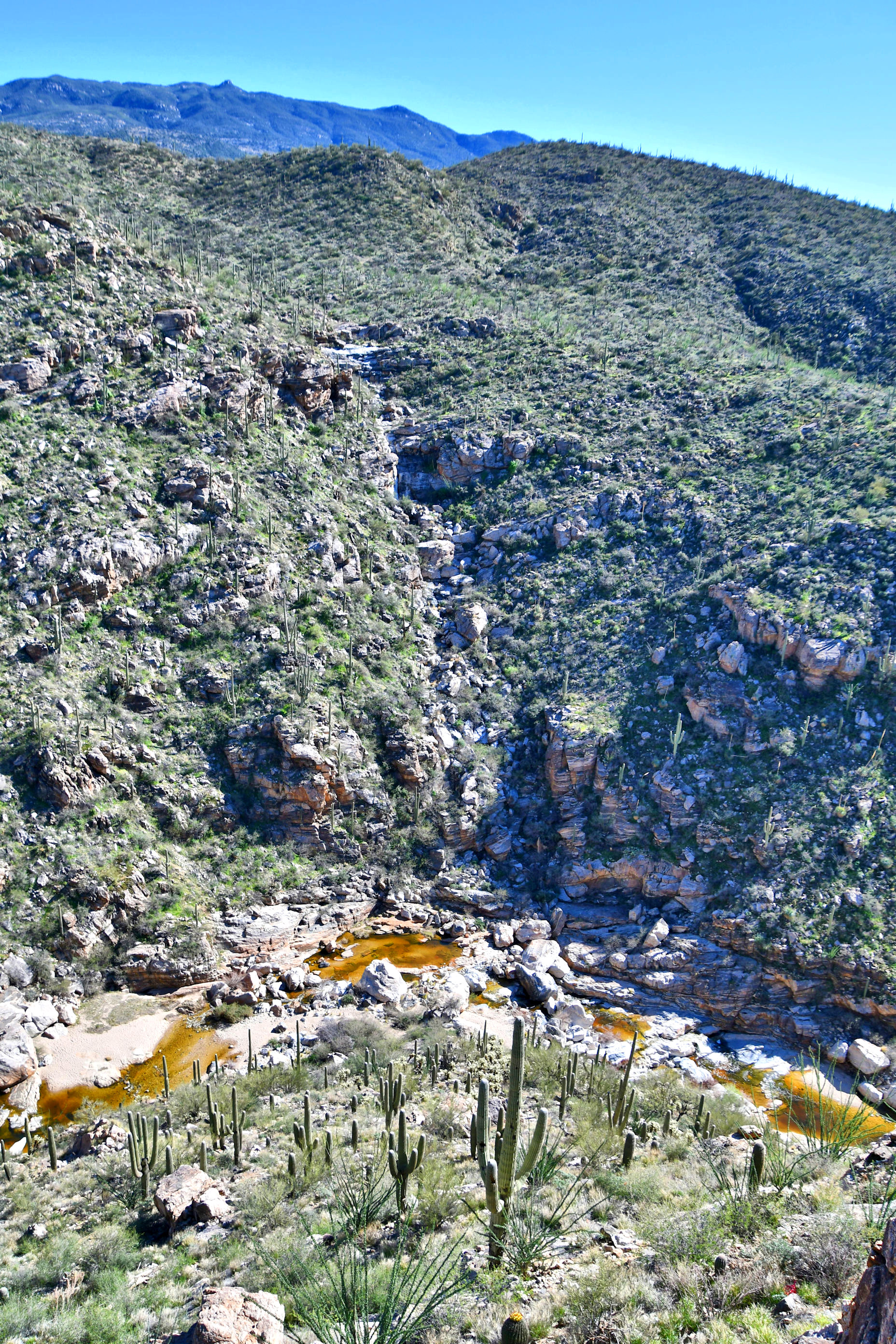 After we left Agua Caliente Park, we made a short trip to Tanque Verde, a small community on the eastern edge of Tucson. My cousin took us up East Redington Road, to a spot he said he learned is a much easier way to see the falls than the hike several miles up the canyon, clambering over rocks. We parked on the side of the road and hiked about 1/4 mile.
