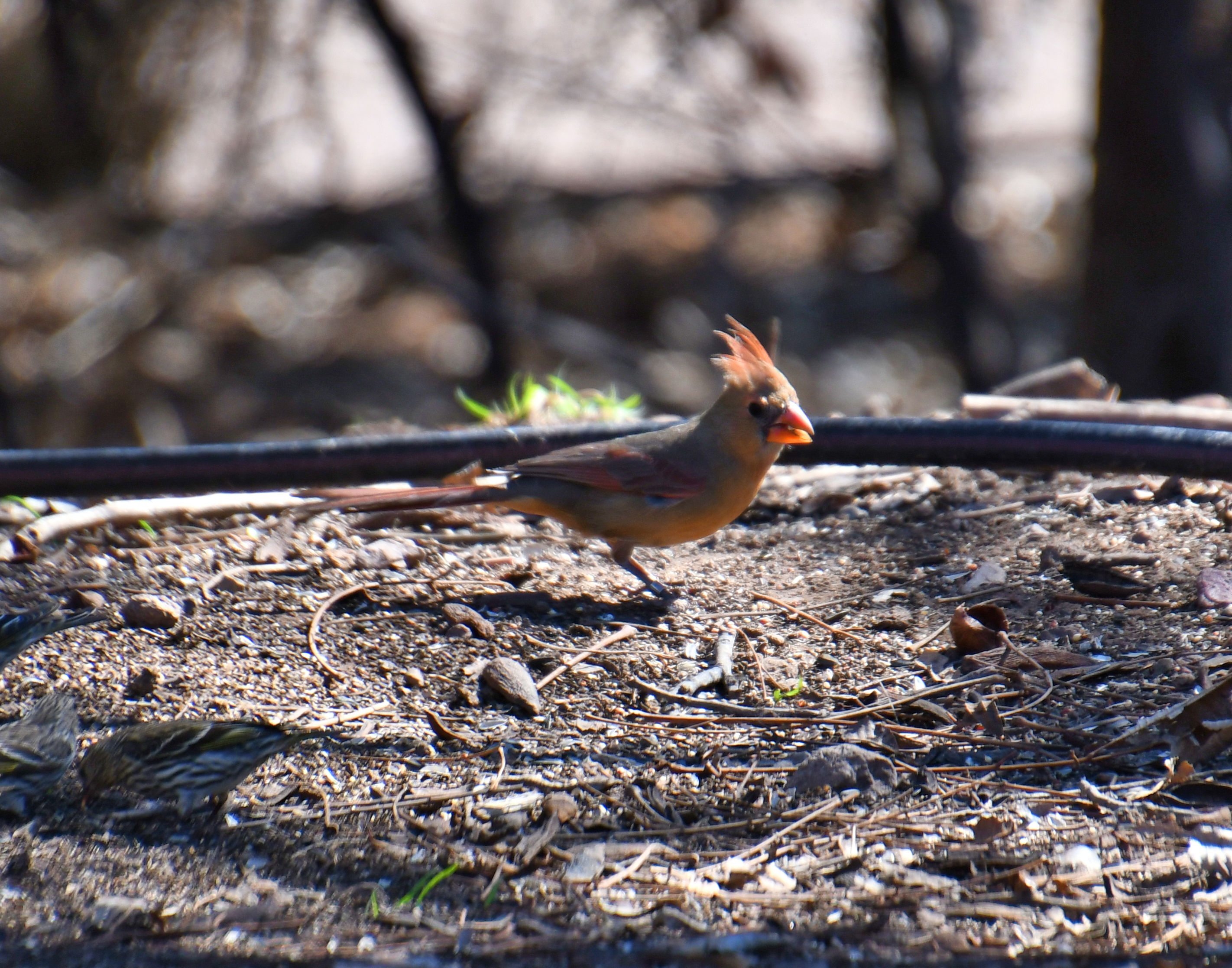 Solving the mystery of each bird is a fun challenge for me, and I’m getting better at it. I use the Cornell Ornithology website the most. That one seems to have every bird I find in the US, and I like the way it’s set up, with photos of males, females, and juveniles, as well as videos and audio clips. But my first step is the browser search bar. I type in something like “small bird black white yellow.” Then I peruse the images that come up. If I can’t find the exact bird, I click something close, get the name of it, then put it into the Cornell site. They have a “similar birds” section at the bottom of each specific bird page. If that doesn’t do it, I try again. “Arizona bird yellow head chest” and try it again. Then carefully compare it to the example birds you find, paying special attention to beak shape, colour around eyes, and distinctions of where the markings are: chest, neck, head, etc. Sometimes I really struggle, like with the Abert’s Towhee in this post. The most distinctive thing about it is the shape of the beak, so I just searched and searched for bird types with a similar beak, like grosbeaks and cardinals and I found a “towhee” gallery and viola! Finally found it.