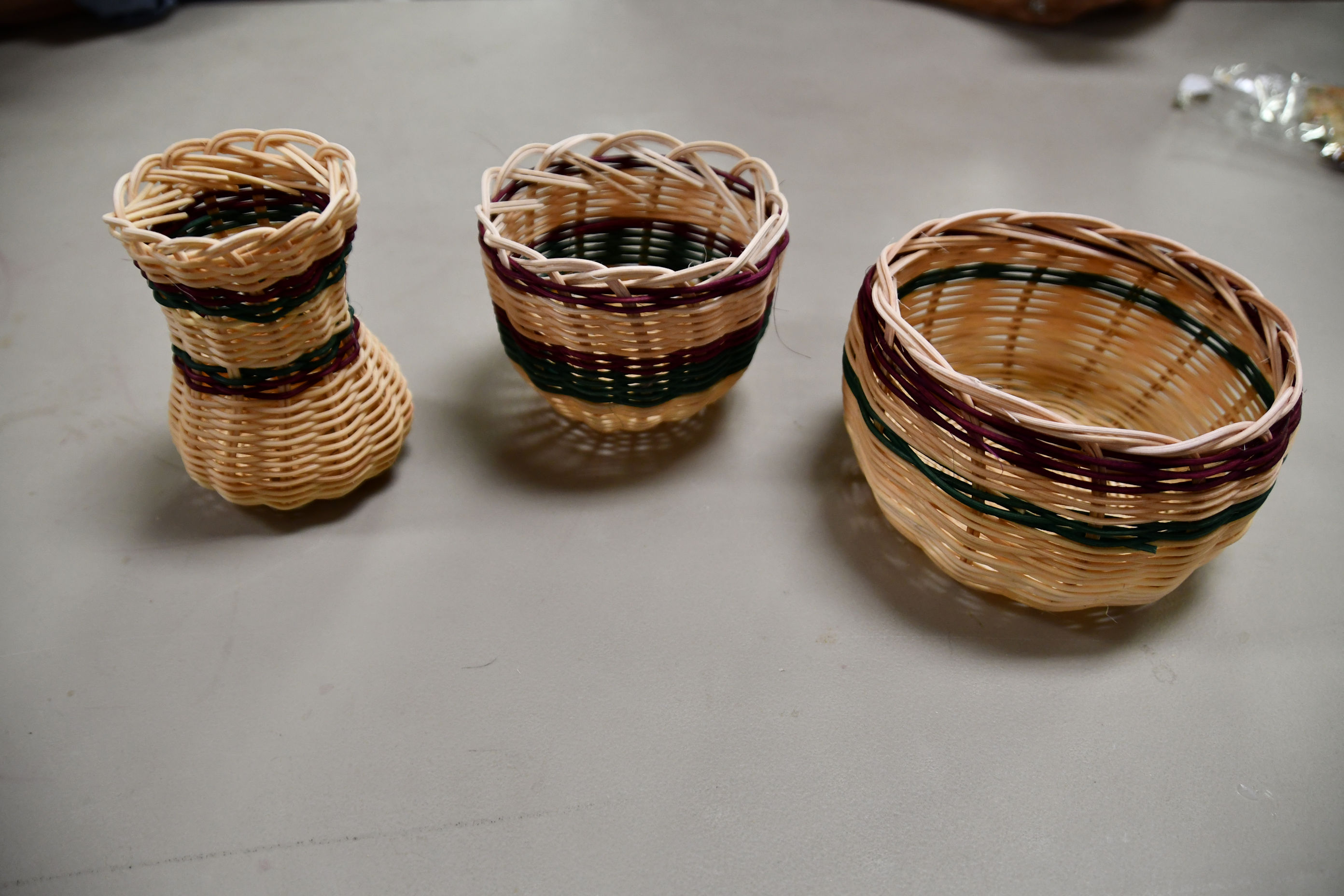 When baskets are at this stage, we brought them to Barbara, who twisted the tops down into the basket for a pretty braided edge.