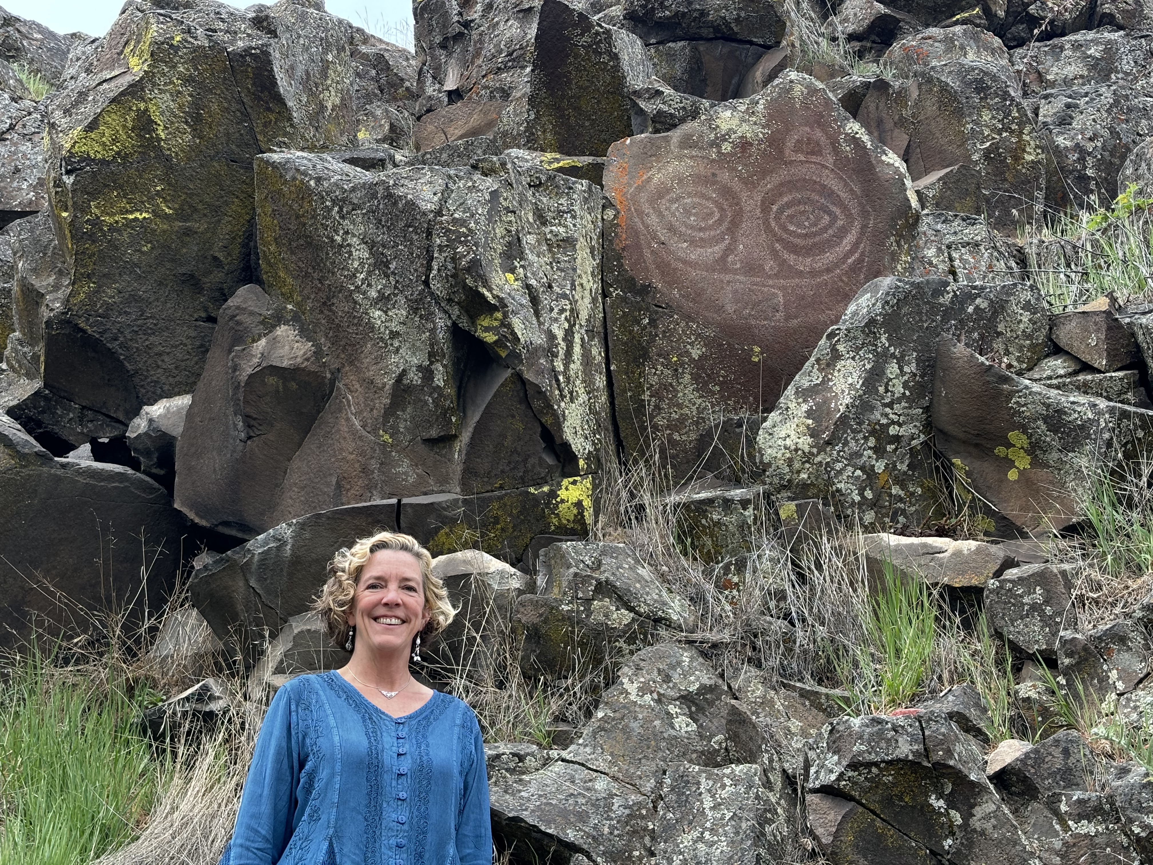 Our April Cherokee meeting was a field trip. (Our March meeting was a basket-weaving class) The tour was to a site that is not Cherokee, but a sacred site to one of our local Columbia River tribes.