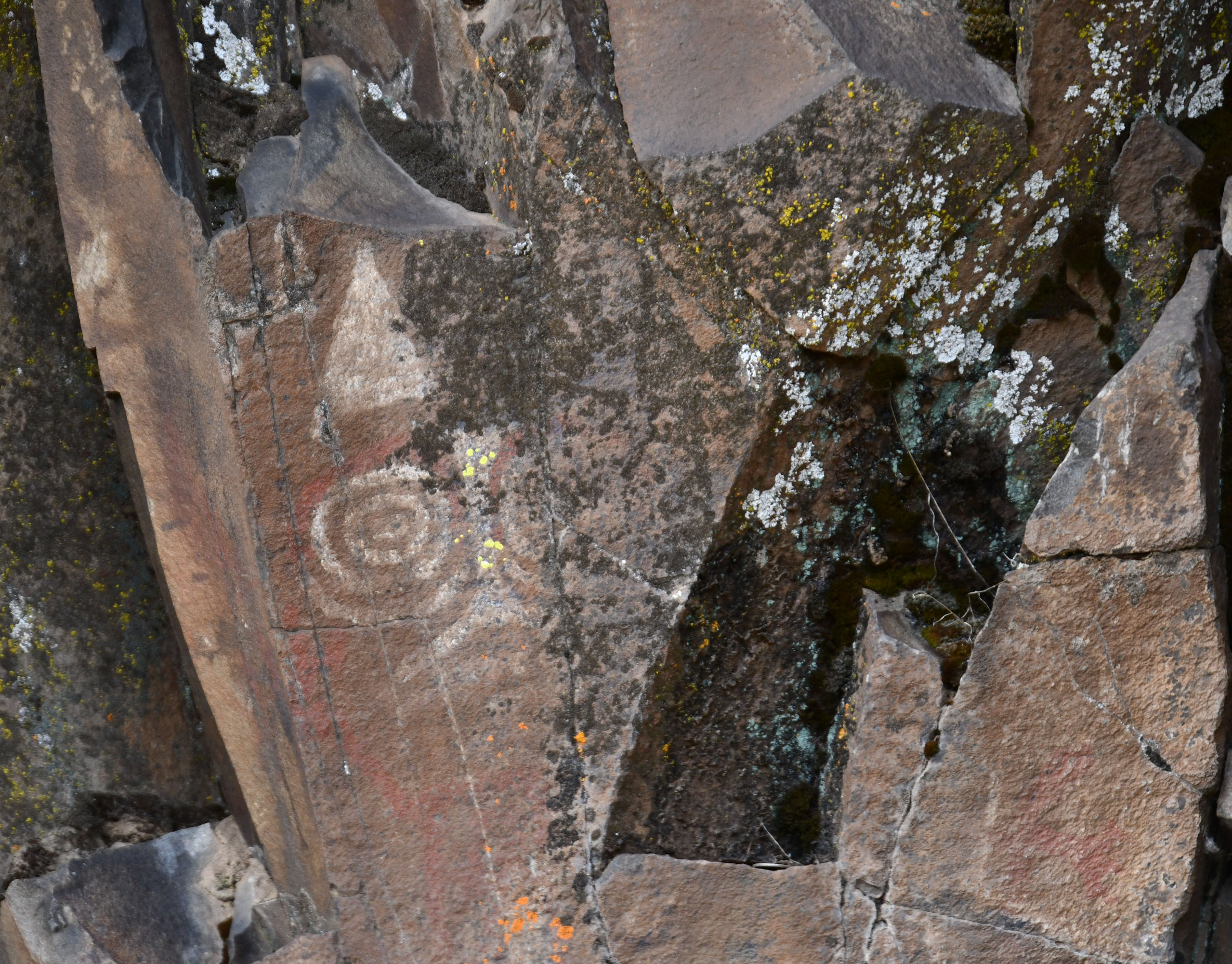 I found a website that says it is a combination of petroglyph (carved/hammered stone) and pictograph (pigment applied to stone). I could not see evidence of chipping, but it’s way up on a hill and I could not get a close look. So maybe it is both, which would be cool.