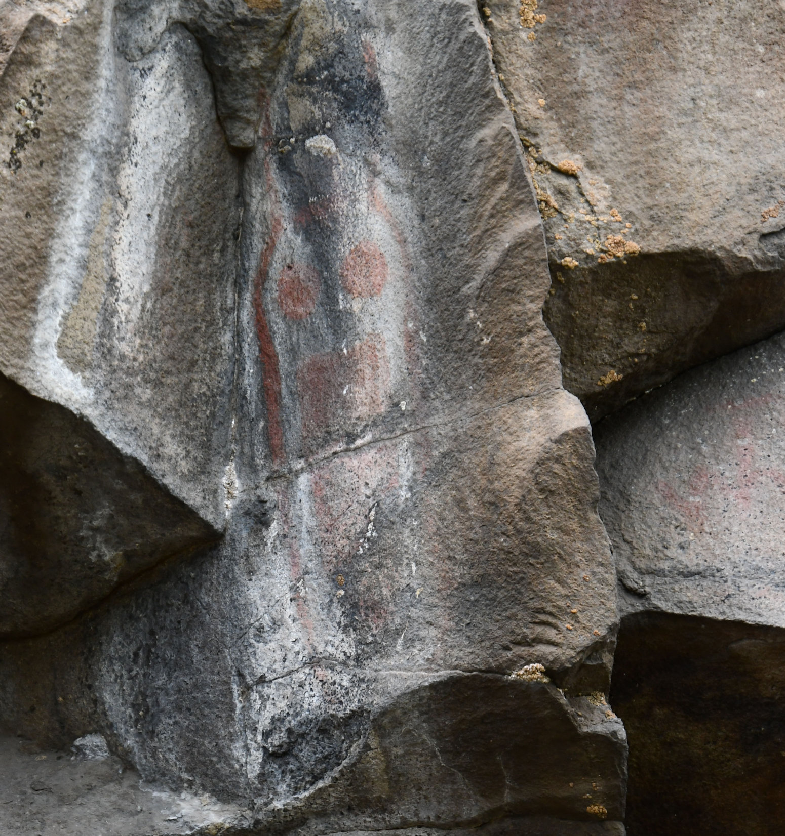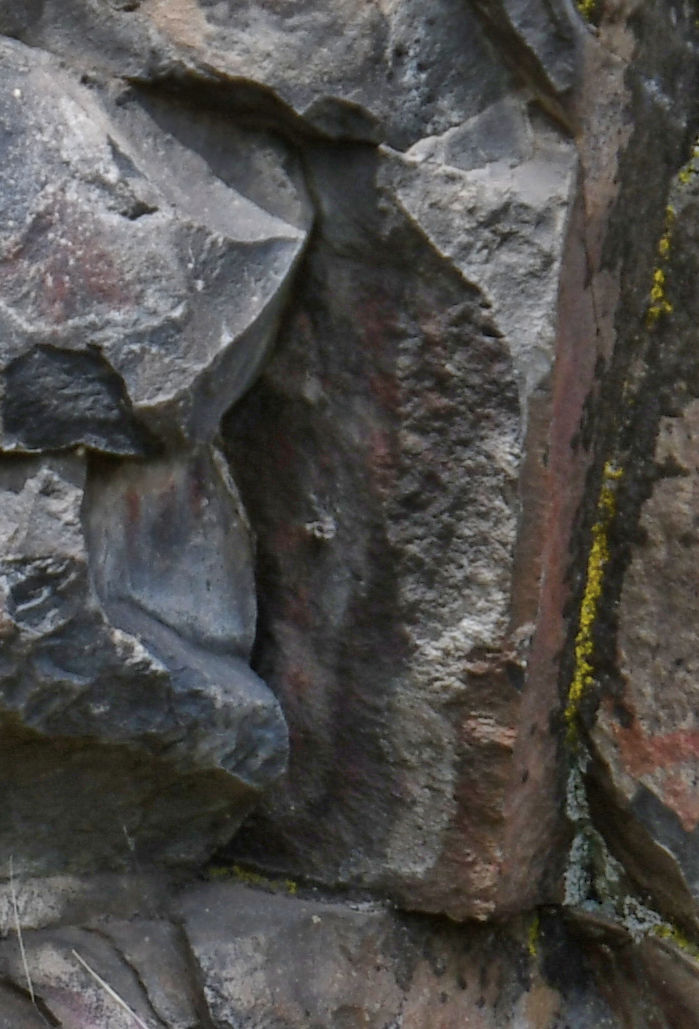One really neat discovery is an apparent bird built from shadows cast in cracks in the stone. A few red marks can be seen, but you can’t really make much of it unless you consider the shadow too. Joe cautions us not to assign meaning to these paintings, because we cannot know what they were meant to represent. Then, he smiled and said in any case, he thinks it looks like a pelican. “They found the bird and gave it plumage,” he said.