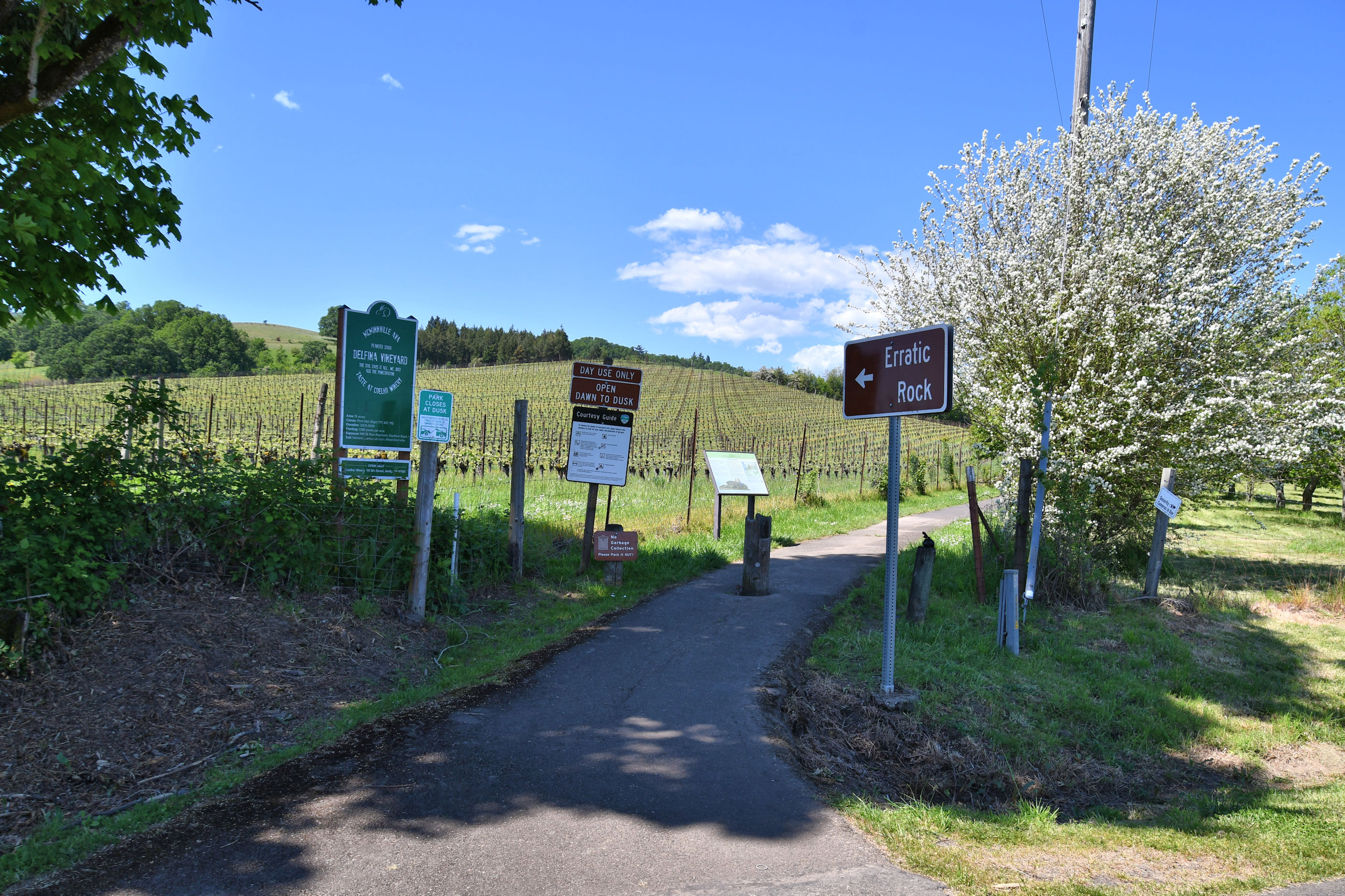 Of course I looked it up. In this case, Erratic Rock is for “glacial erratic.” This is a rock foreign to the area that was carried here by a glacier. Thus, you will find erratic rocks all over the world. They can be tiny or giant. The one in McMinnville, the Bellevue Erratic, is 90 tons and comes from what is today Montana. It was carried during the Missoula Floods that I have mentioned before, that periodically carved the river channels and deposited the extraordinary rich sediments in Oregon’s agricultural valleys.