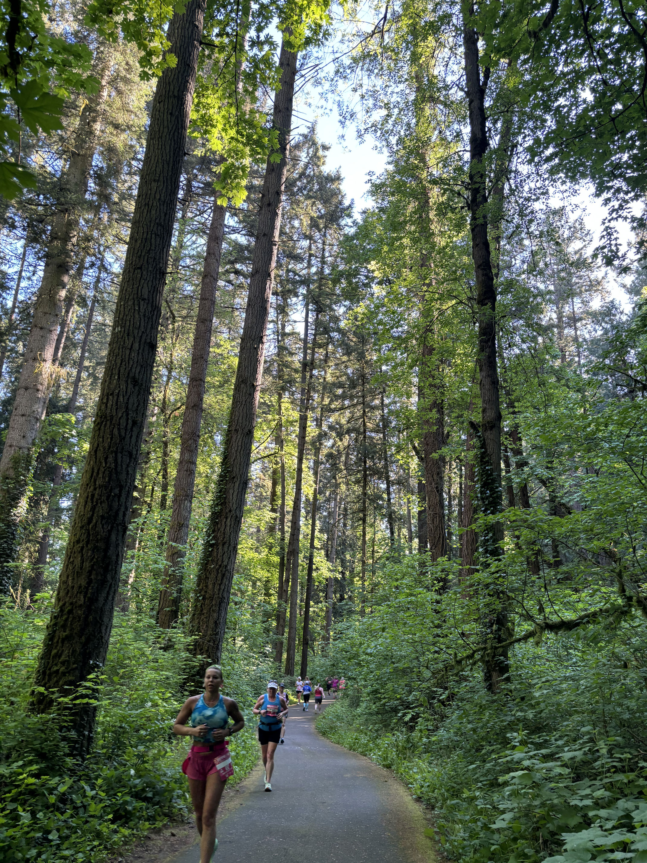 The race was fun. More fun than last year. As I continue my training in preparation for the Belle Brigade race in August, I am a whole different body this year compared to last. I was struggling last year after a spring injury, and spent the whole year with swollen, painful knees that grew worse during the year and limited not just my racing, but all my movement that involved legs, like sitting, standing, walking. By the 2023 August race, I limped along at a pace around 16.5 minutes per mile, with knee braces on both knees. By October I was fed up and got some physical therapy, which was magical. I worked all winter long on PT and my legs are really close to good as new again. My pace in the Hippie Chick race was 12.3 minutes per mile! It’s my best walk pace ever.