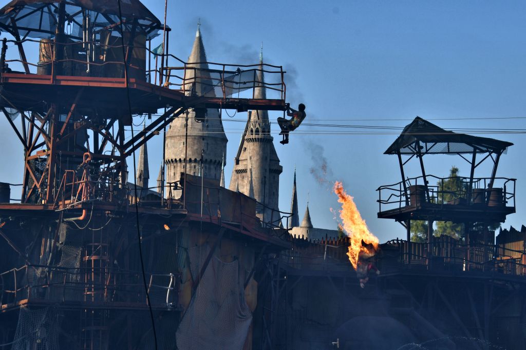 An extremely dramatic battle ensued, with lots of fire, fireworks, and water splashing everywhere. There are explosions and sword fights and gun battles and high dives and trapeze tricks and… oh, there is so much. We were simply dazzled.