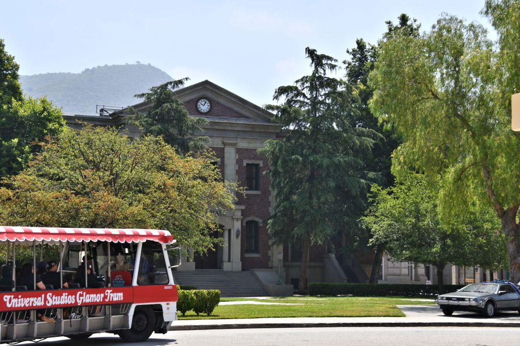 The ride is actually pretty cool for all the stuff they gloss over: Entire neighborhoods of fake movie sets, with fake hospitals, and fake suburbs, a fake plane crash, fake banks and fake Old Westerns and fake Mexico. We saw the back lots of ginormous studio buildings and set scenes and parking lots and cranes and things; the stuff behind the productions. I found it all very cool. Especially in our little trolley cars because we would come to a thing that I might not recognize, then the little TV in the front of the trolley would play the movie scene of that spot, and we’d all go, “OH! I remember that!” and the location would be right there beside us.
