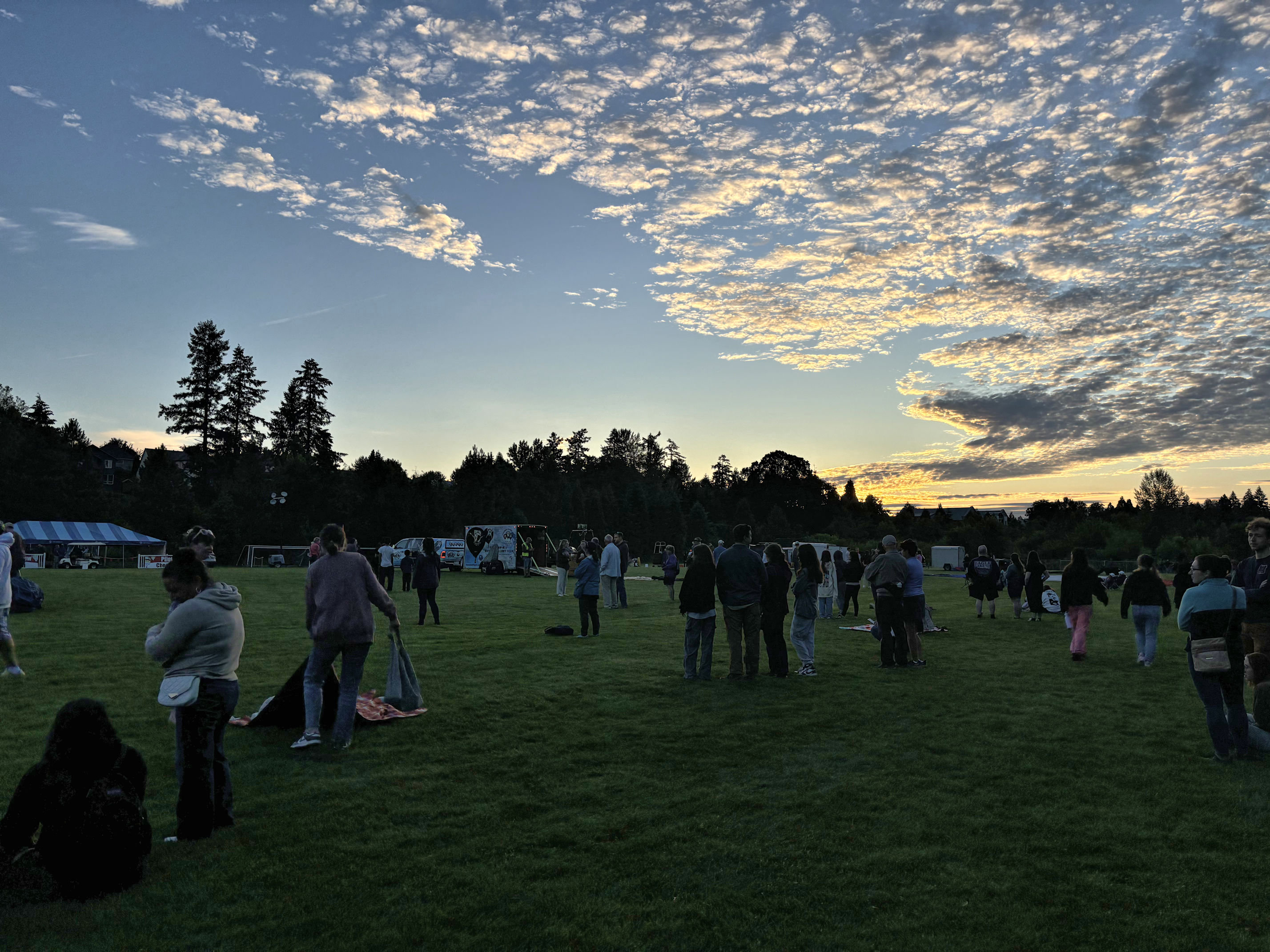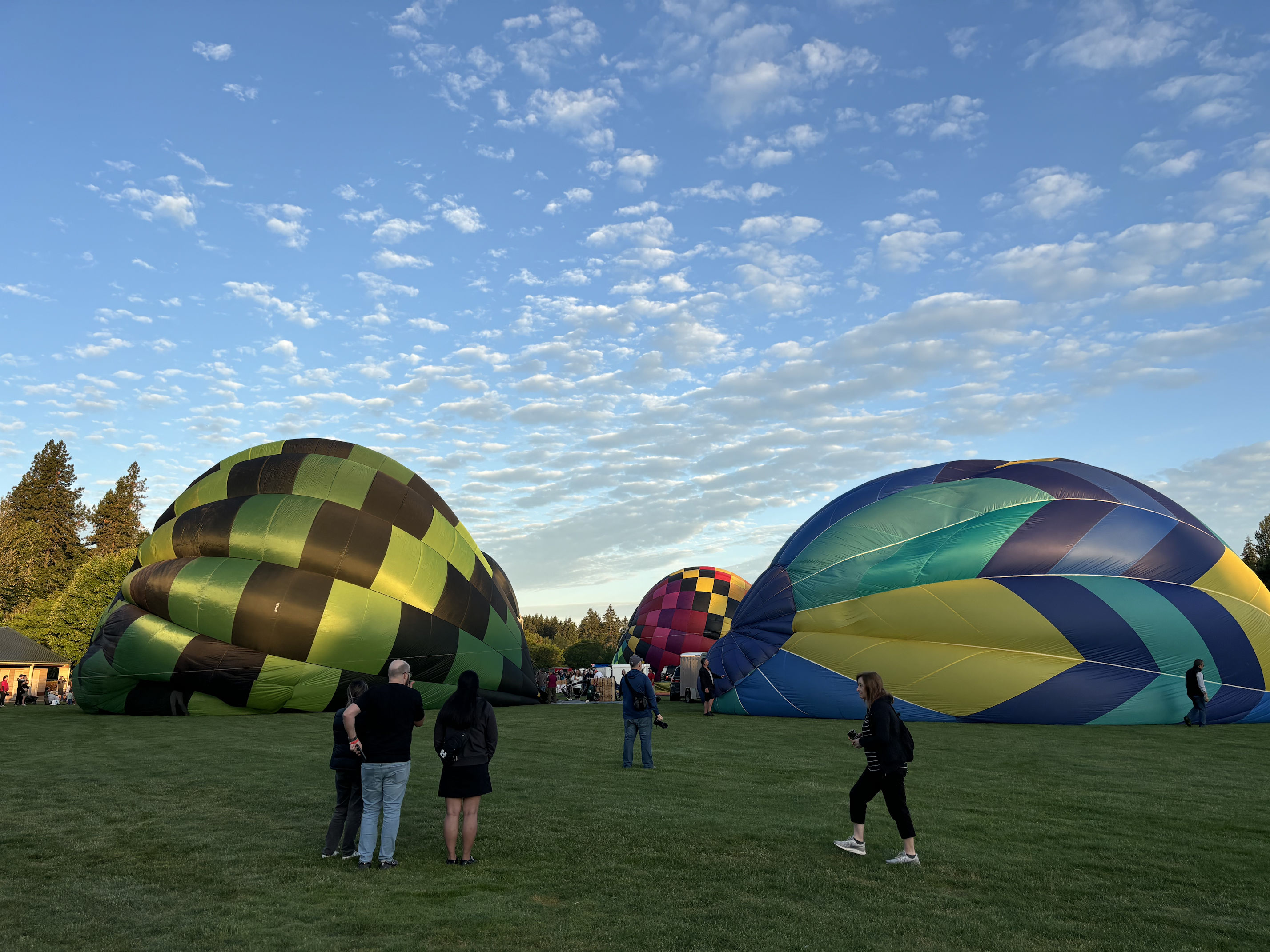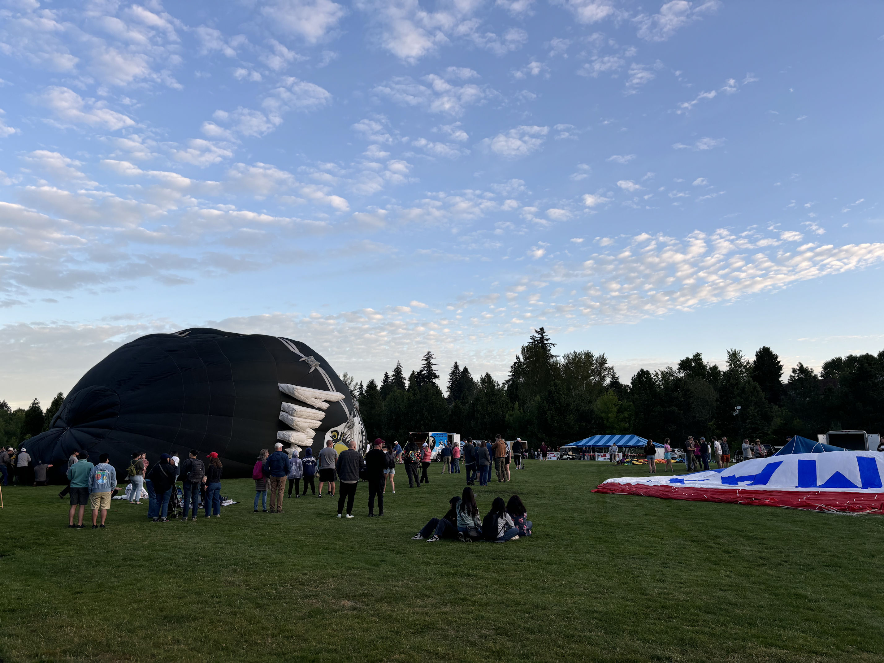 Things brighten up, and we see the huge balloons laid out on the grass.