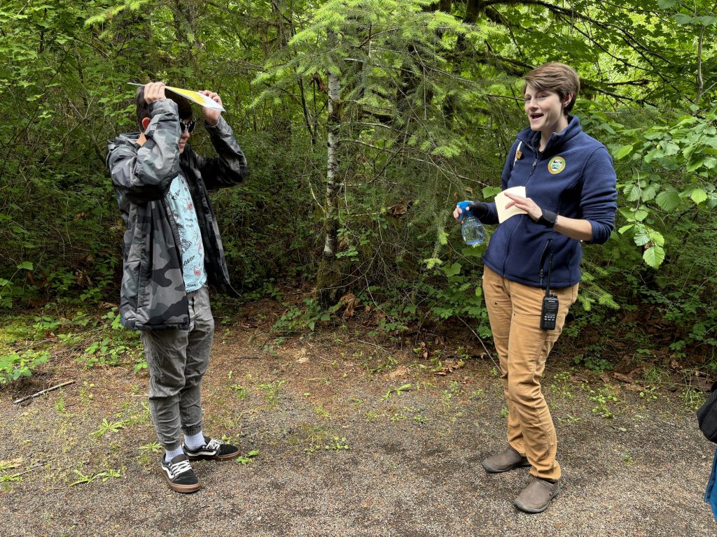 Next we met a forest guide, who took us along one of the many paths around the center, and helped us identify the trees. She used tricks and stories to help us remember characteristics of the trees, which would then help us remember the names of the trees.