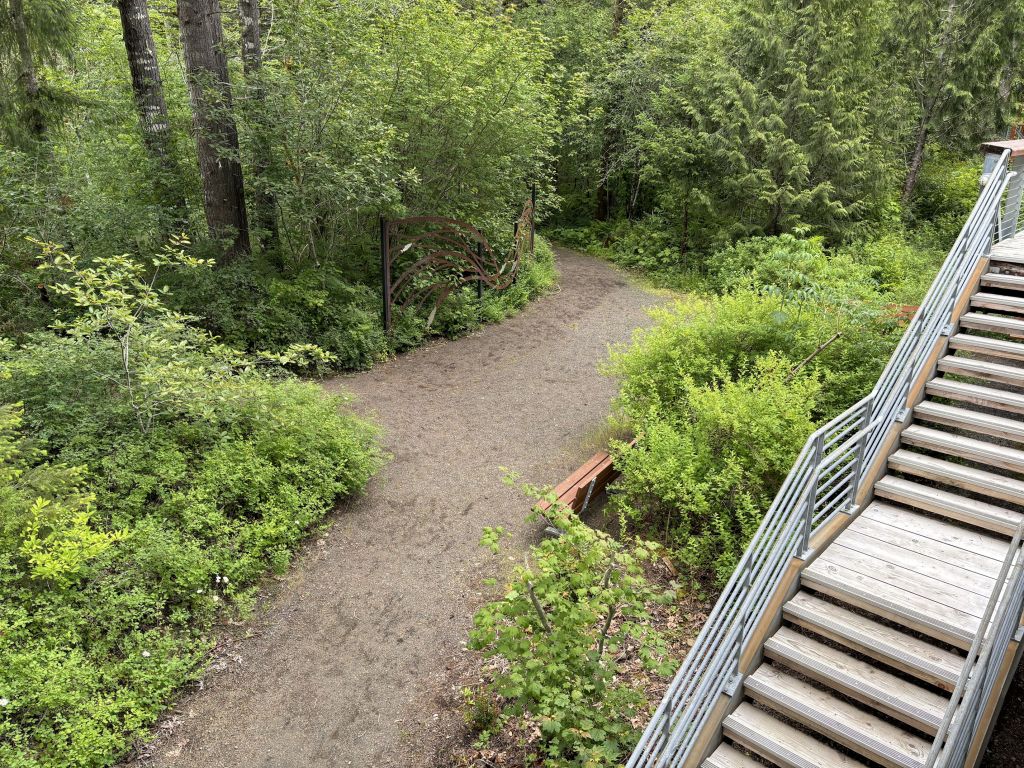 As you see in the photo, the volunteers did not waste their time. Today it’s a beautiful and beautifully managed forest. The Forest Center is absolutely focused on the history of wildfires, how they damaged the land, and how the land recovered, and it is also focused on what makes a healthy forest. Nearby is a mock lookout tower, modeled on those used by wildfire lookouts in days past, to keep an eye on the forests below and radio in to firefighting crews the precise location of fires. From this tower we were able to take the above photo, but I foolishly forgot to take a photo of the tower. Ha!