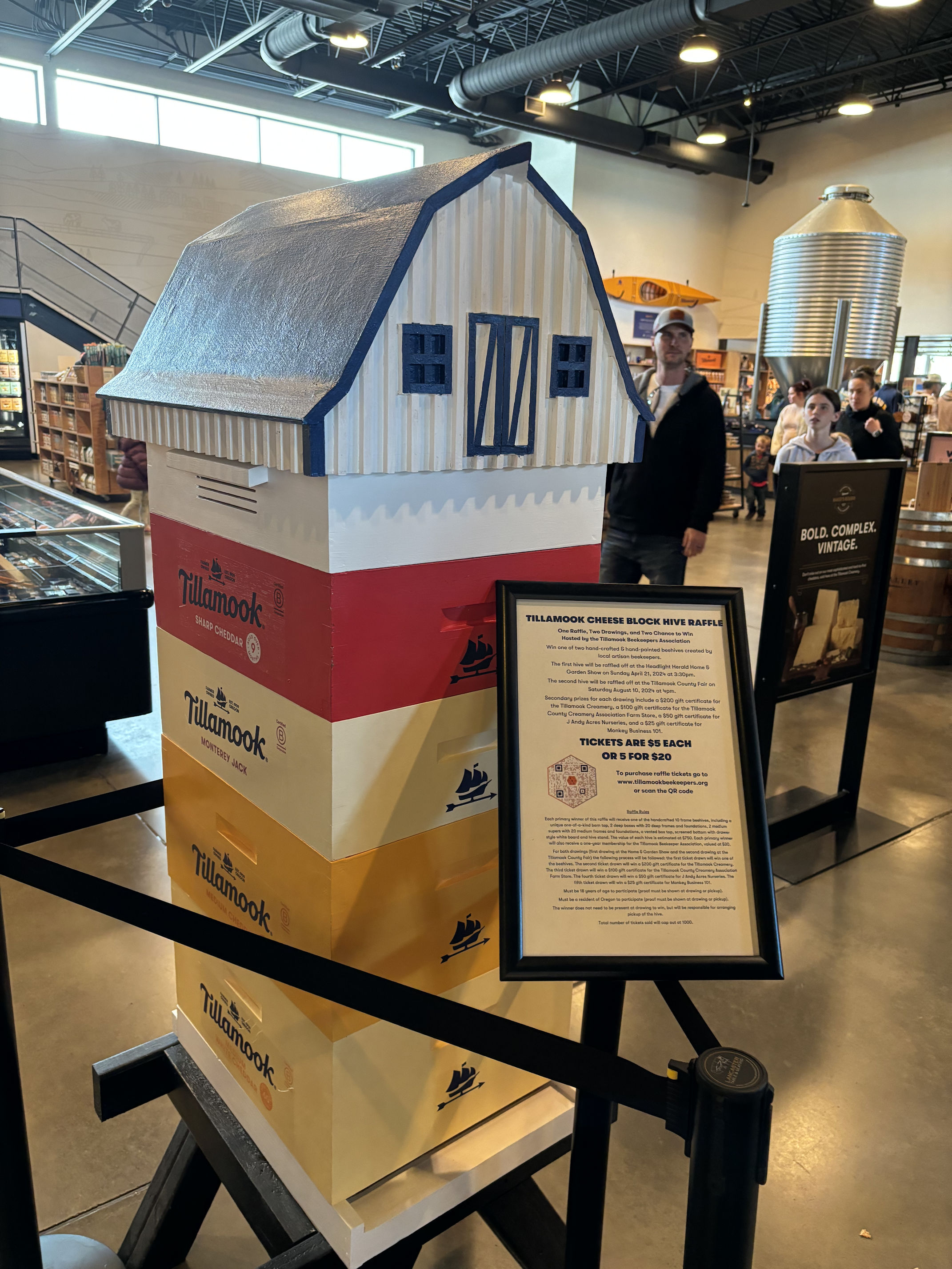 I thought this was the most creative bee hive paint job I had ever seen. The colours and design is modeled after the giant blocks of Tillamook cheeses.