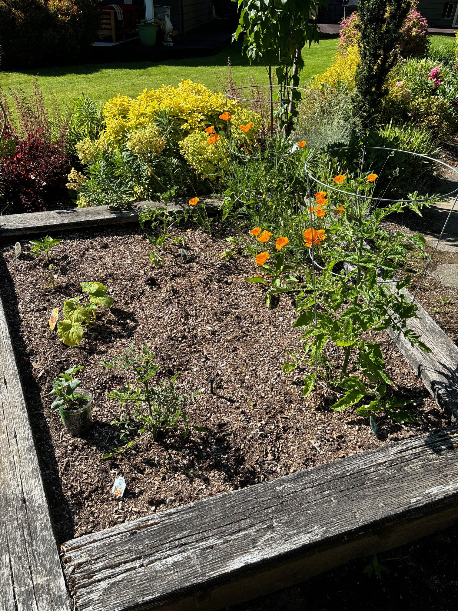 I haven’t had a chance to grow a serious garden in forever, since my planting while I lived in Rainier was purely within the context of war between me and the deer. Deer eat absolutely everything. Even if they don’t like a plant, they will eat it periodically just to make sure they still don’t like it. Anyway – this year I can really truly plant. But any gardener will know that a person needs to learn the soils, the pests, the exposure. This year we are learning a lot of that, and learning that our biggest challenge is soil!!